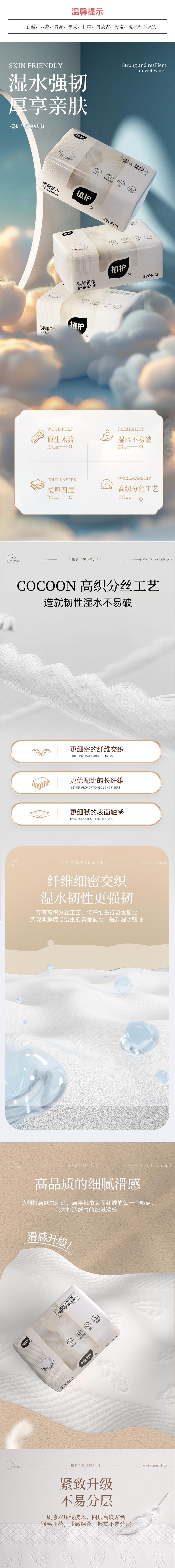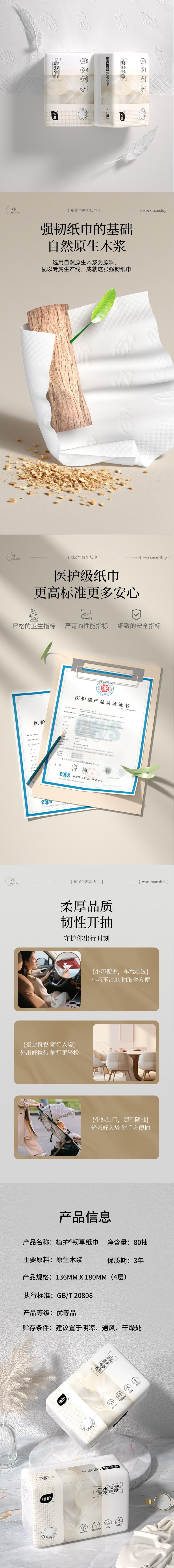 植护 韧享纸巾(羽韧系列)136*180/4层80抽*6包 ZH4087426