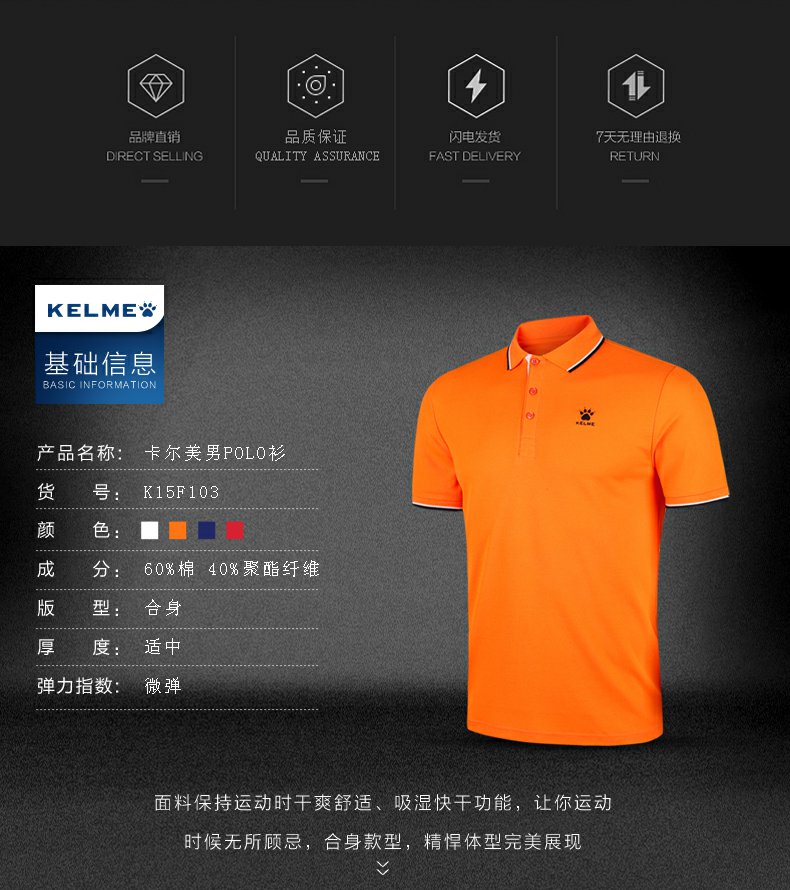 卡尔美 夏季男士运动休闲POLO衫翻领条纹T恤透气速干短袖男