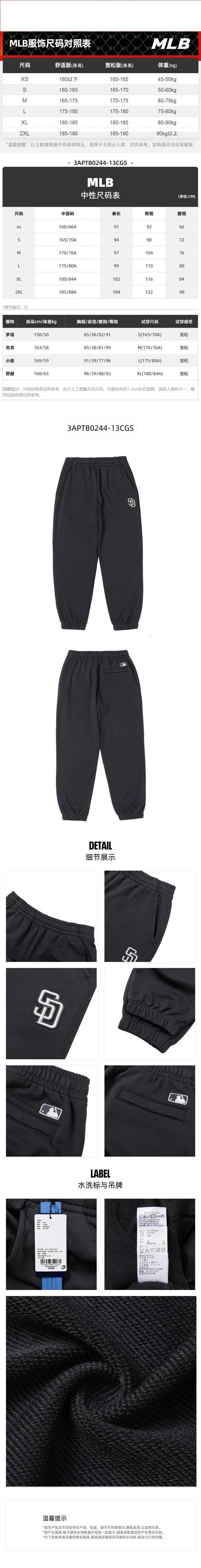 MLB 男女同款长裤 3APTB0244-13CGS