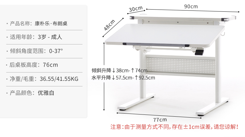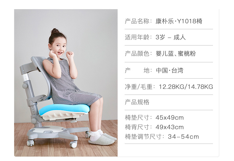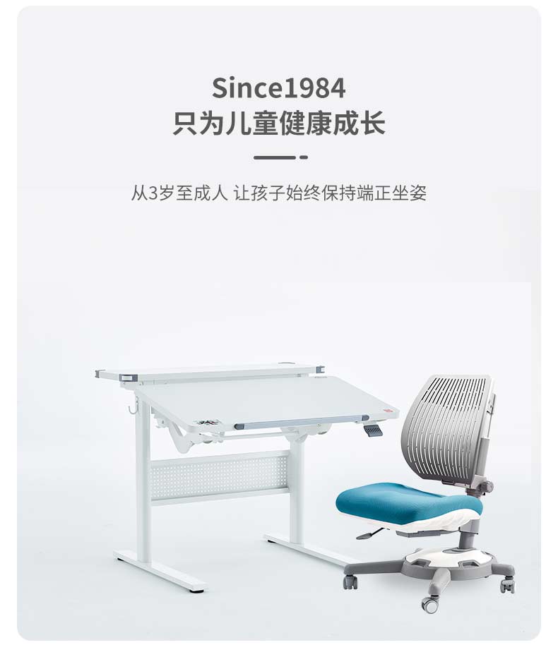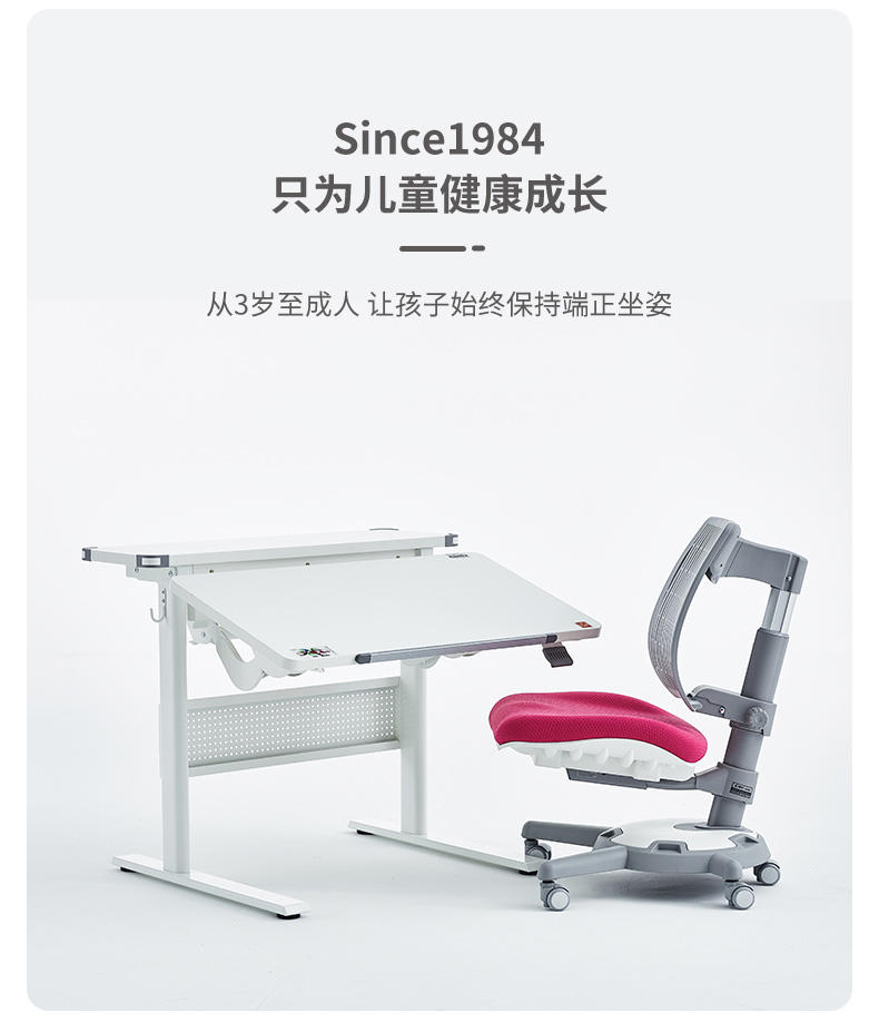 3岁+ 康朴乐气压棒升降学习桌 | 布朗学习桌+柏拉图椅(Y1018)套装 尺寸:90cm*80cm,送椅套+桌垫