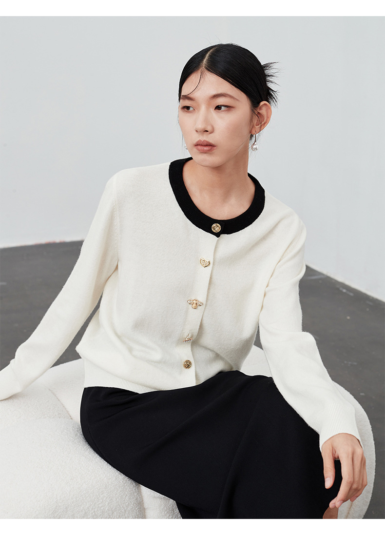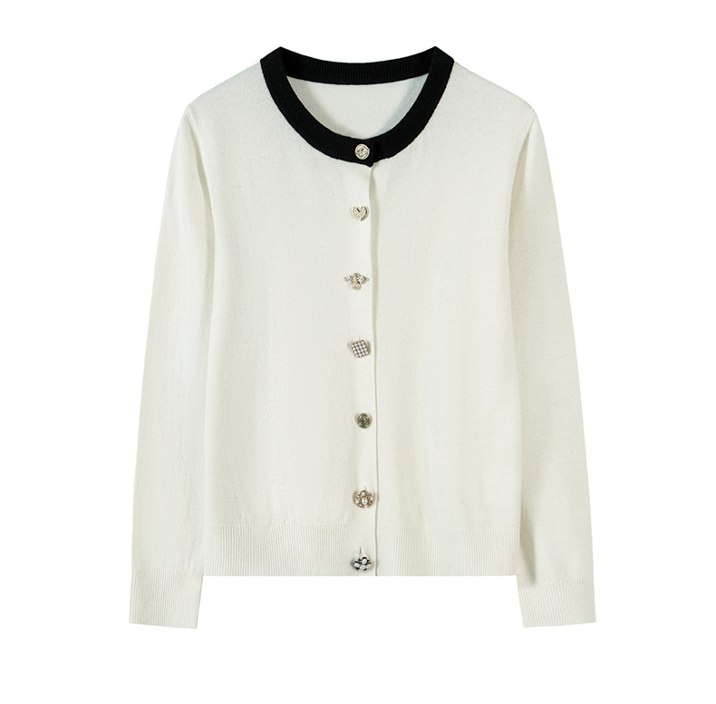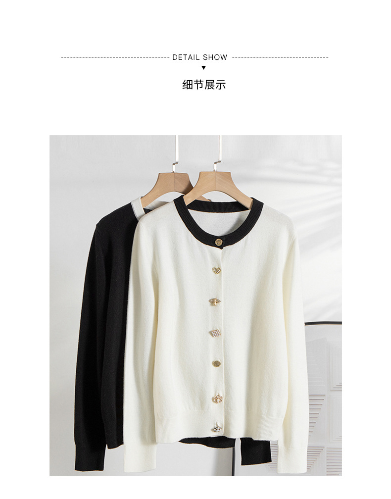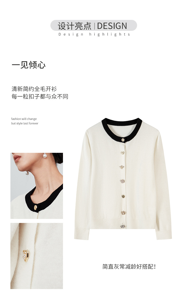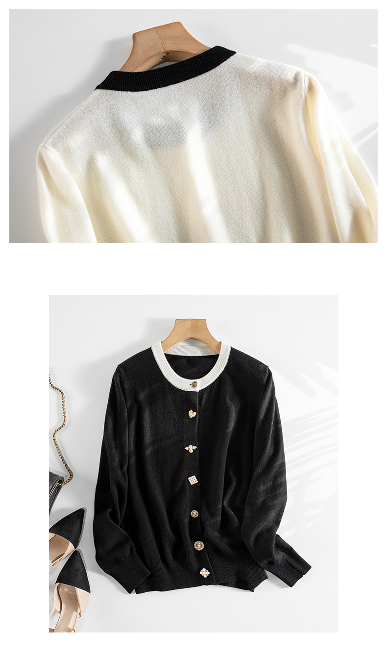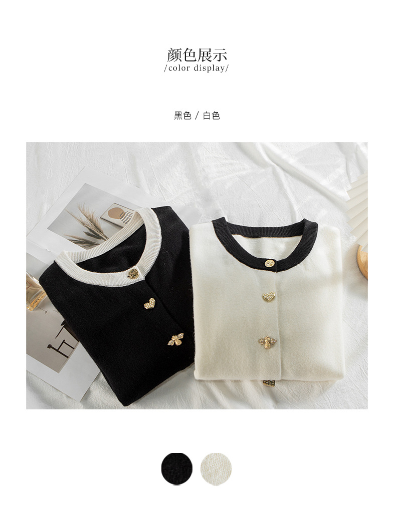 RN-H6140 时尚名媛气质小香风撞色针织开衫外套