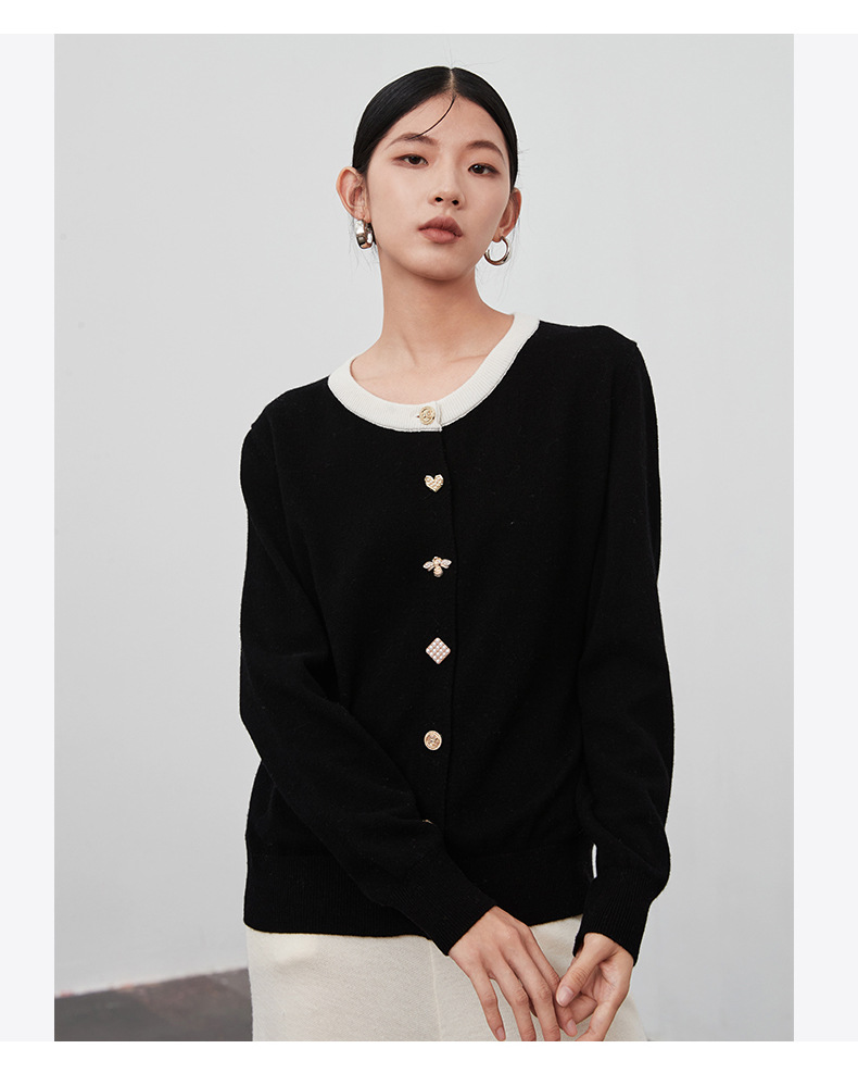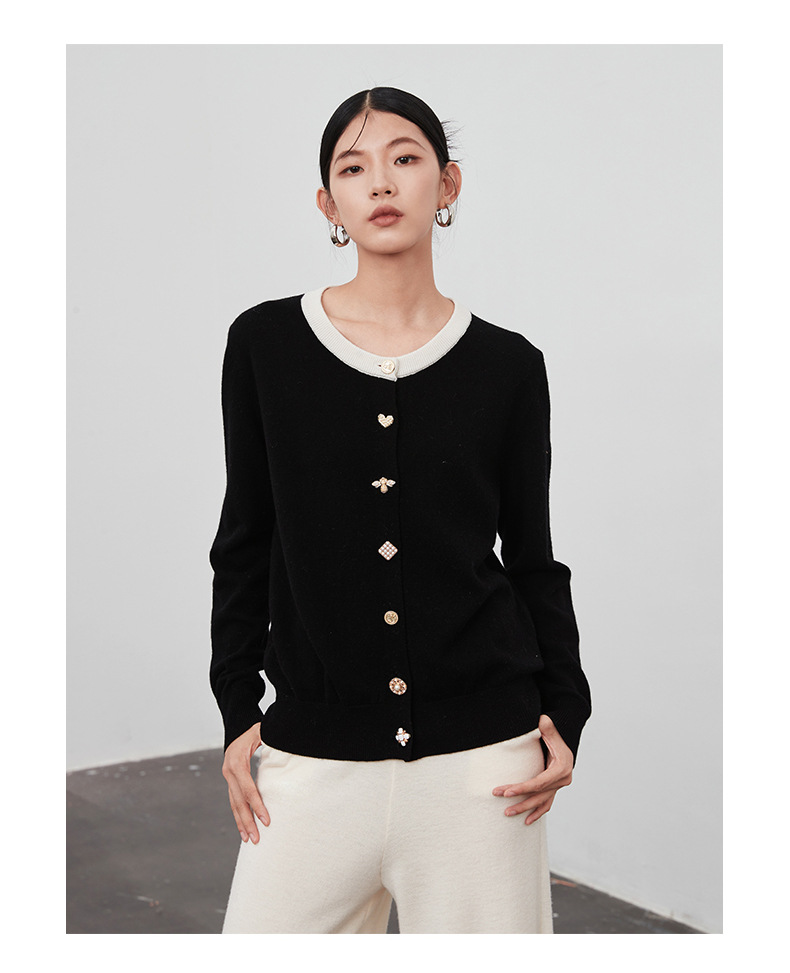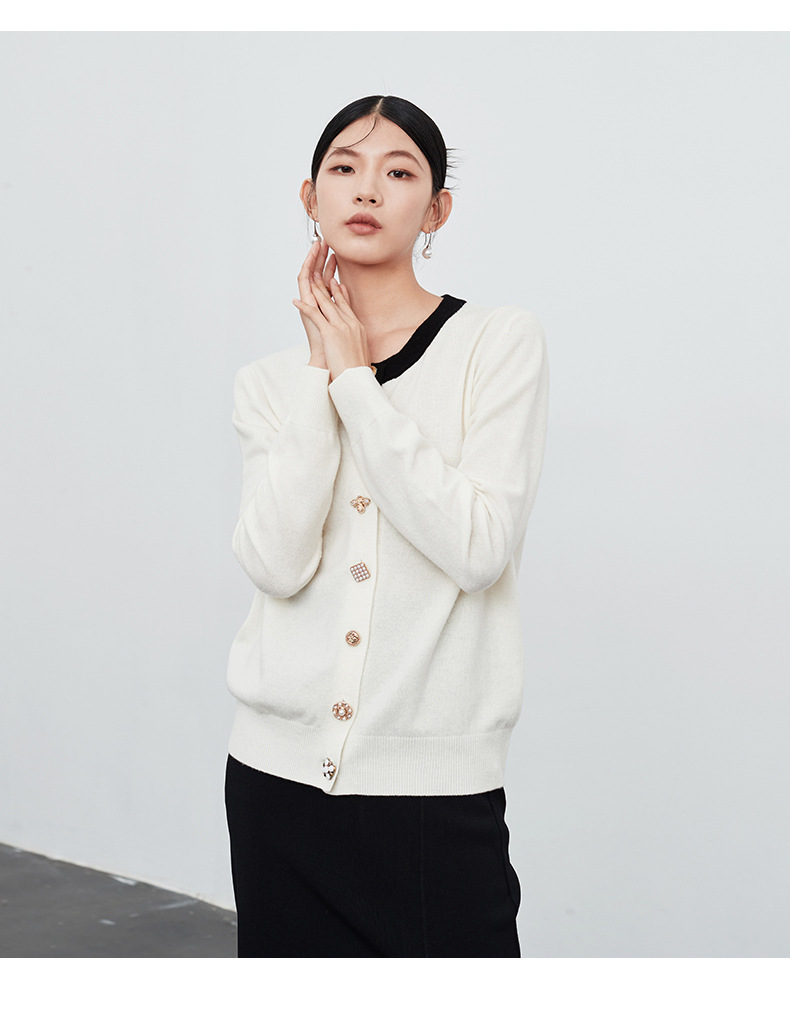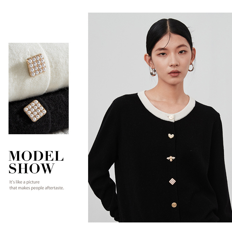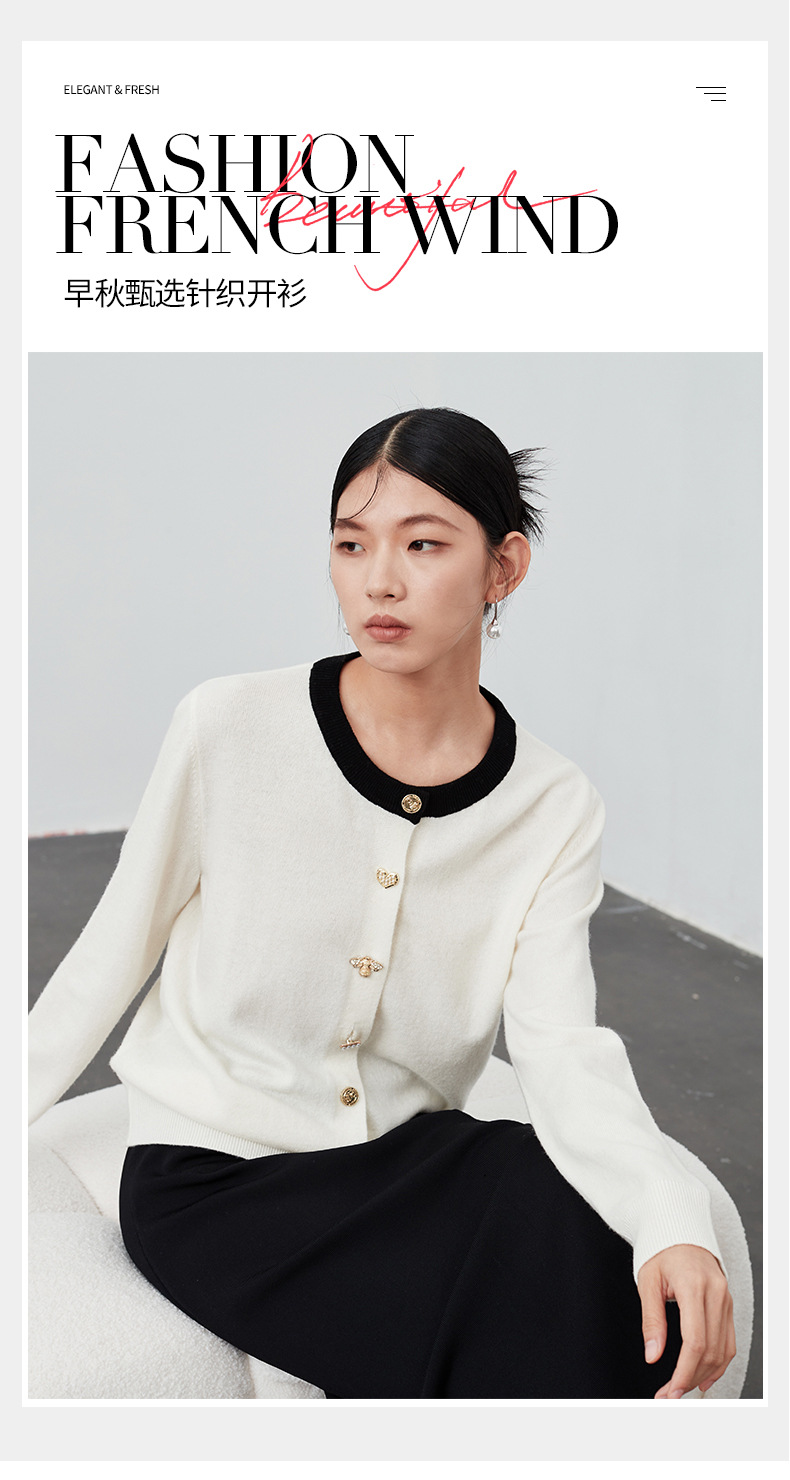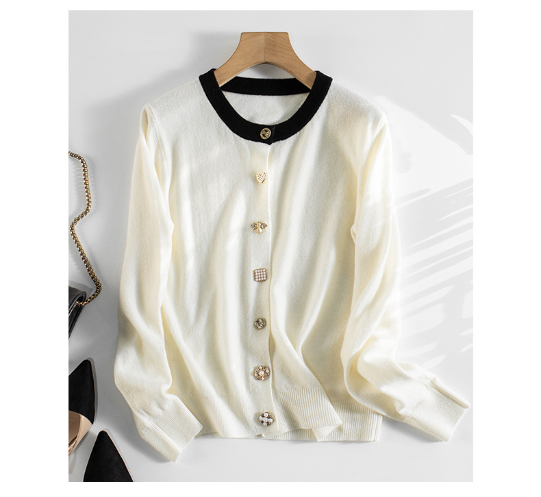 RN-H6140 时尚名媛气质小香风撞色针织开衫外套