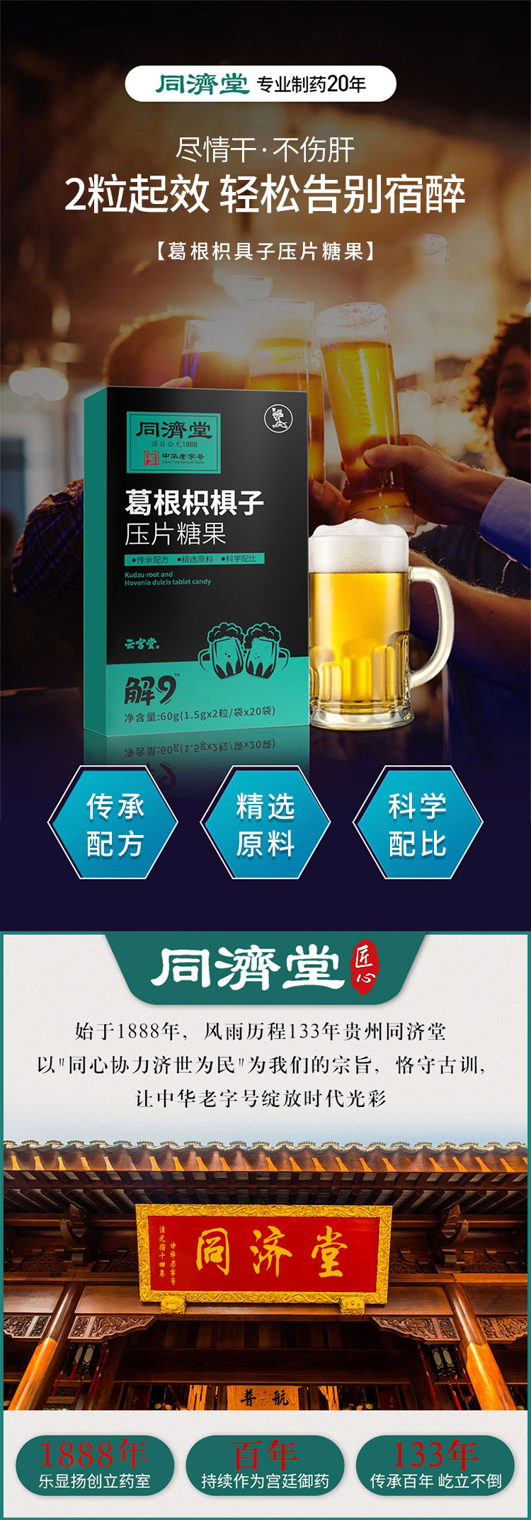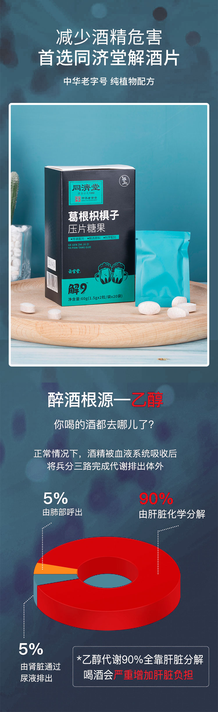 【买2送1,买3送2,买5送4】同济堂葛根枳椇子压片糖果 喝前2粒轻松助你酒场无惧植物成分 安全放心