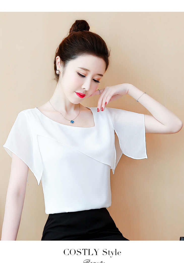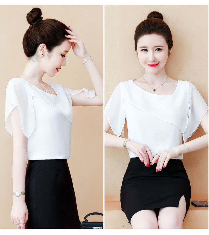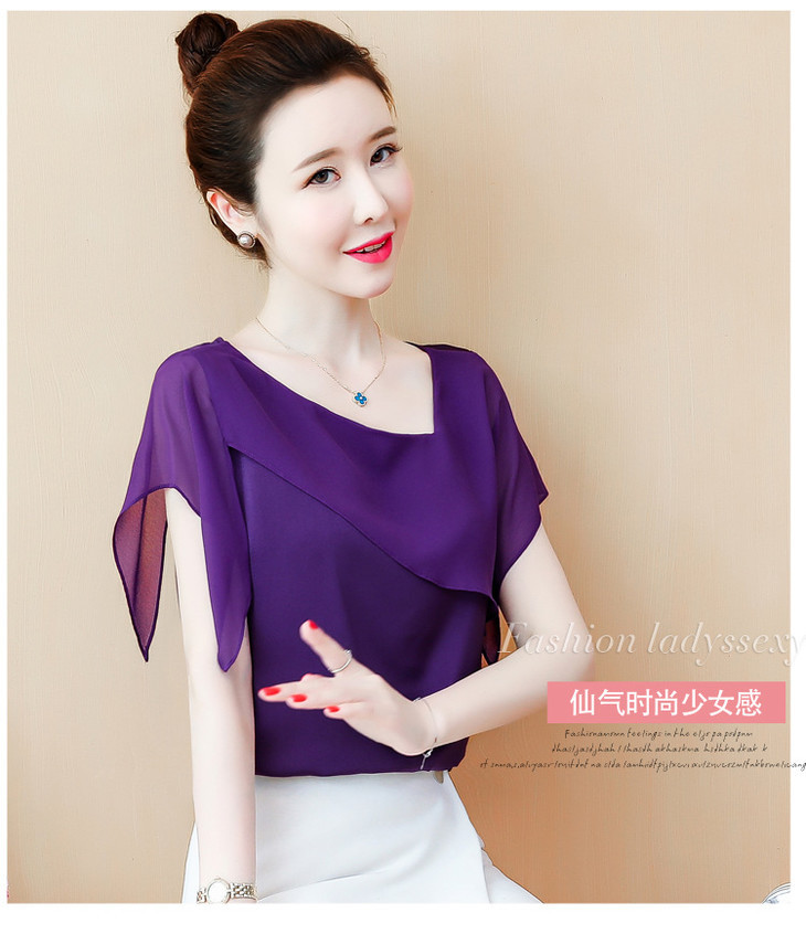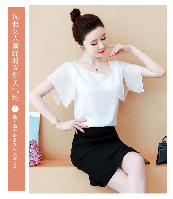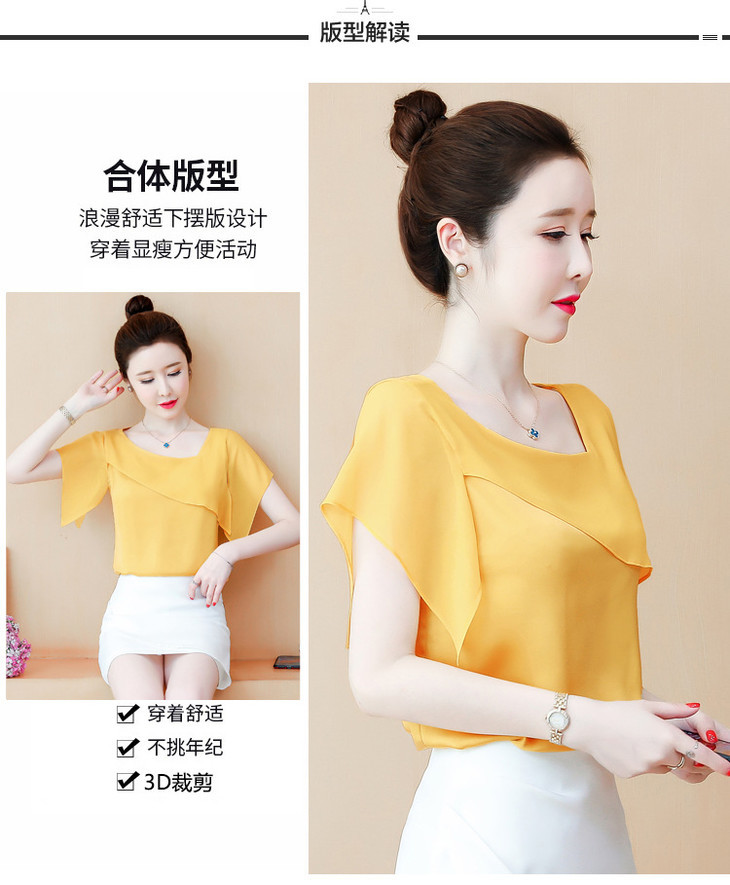 YH-351933夏新款时尚百搭气质拼接雪纺衫
