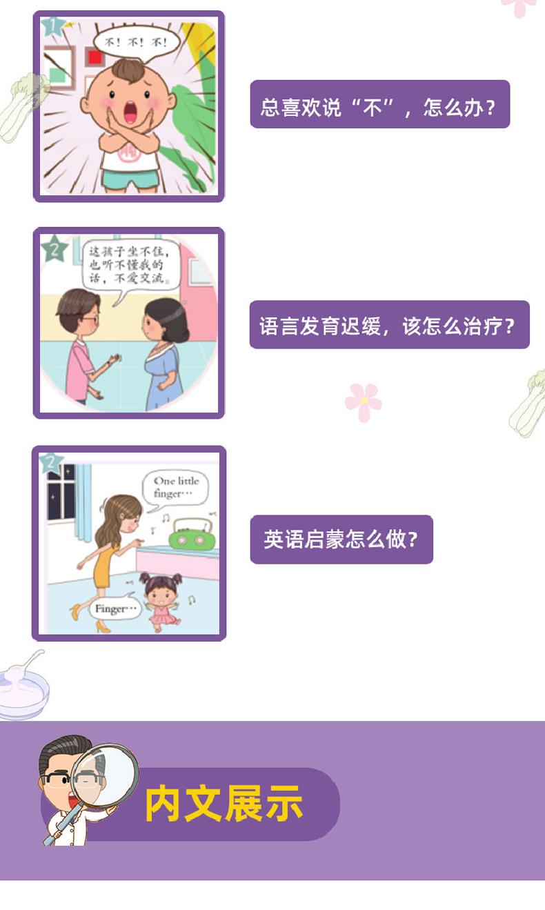 ★ 实操性强——按照话题热度排列成章,采用“提出-分析-解决”的方式,使得每个难题独立成单元,育儿难题,逐个击破。