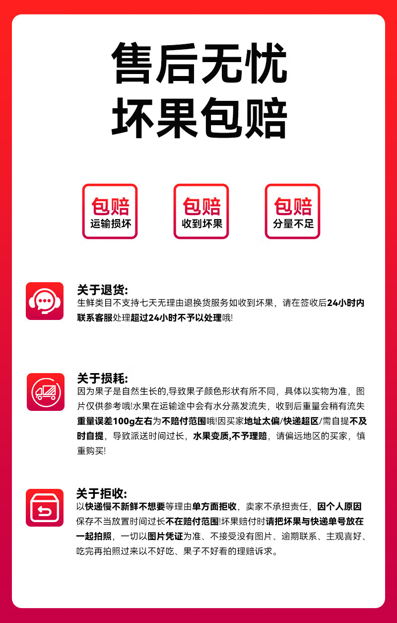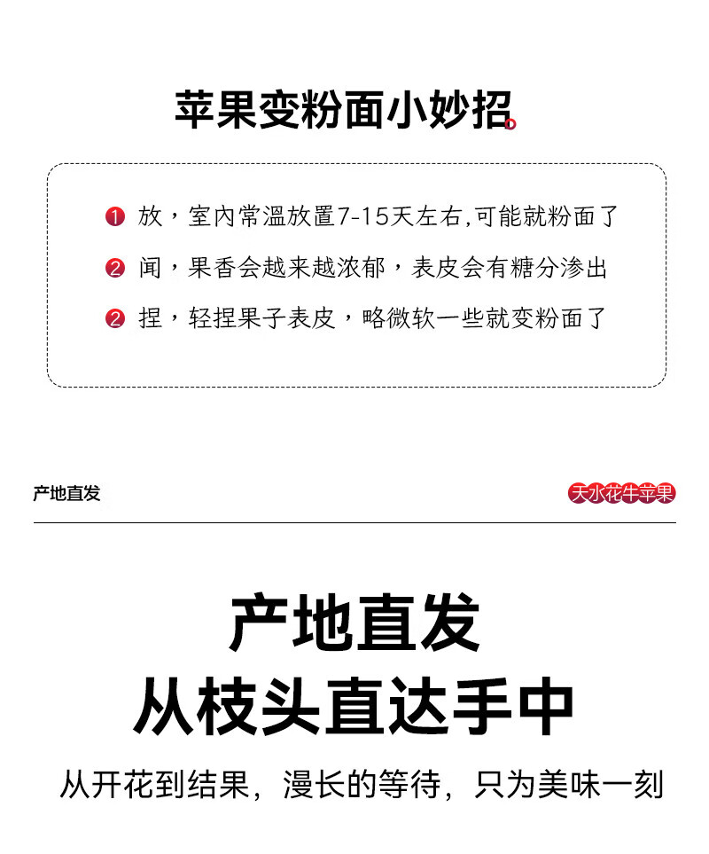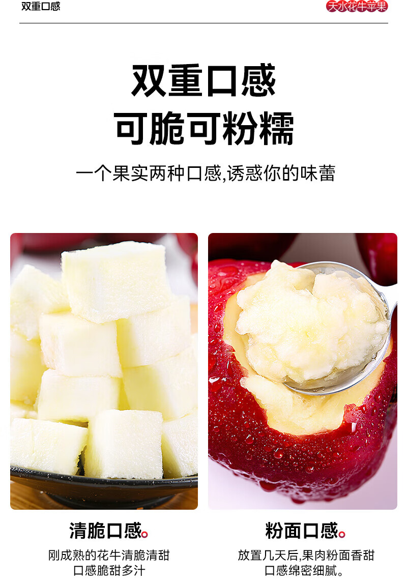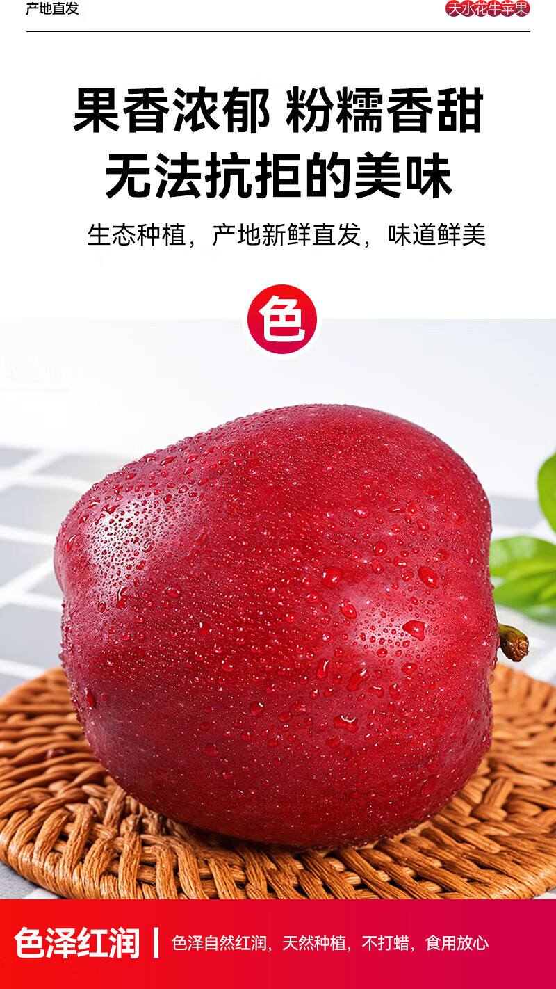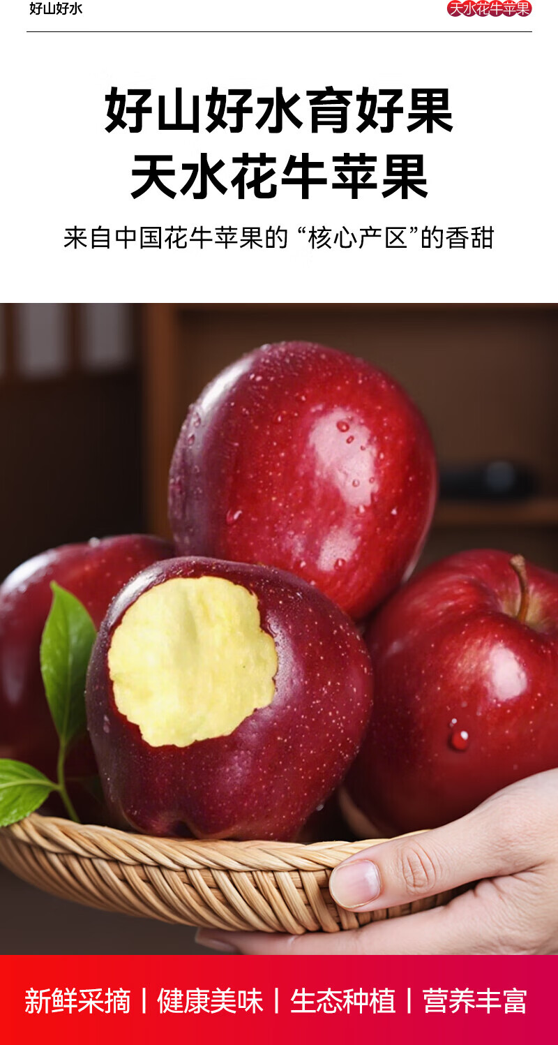 【品名】甘肃高原花牛苹果 【规格】 净重4.5斤中果(70-80mm,12-16个) 净重4.5斤大果(80-85mm,9-12个) 净重4.5斤特大果(85-90mm,6-9个) 净重8斤中果(70-80mm,22-24个) 净重8斤大果(80-85mm,18-22个) 净重8斤特大果(85-90mm,15-18个) 精品礼盒净重6.6斤(80mm-90mm,12枚装) 【产地】甘肃 【发货地】陕西 【发货快递】圆通/中通 【不发货区域】新疆、西藏、海南、港澳台地区不发 【补邮费地区】内蒙+3元、北京、上海、深圳+1元 【发货时效】48小时,节假日顺延 |