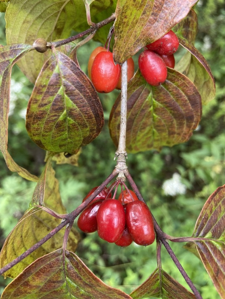 每年“霜降”过后,经历了全年温差最大的一天,山茱萸果子红得发亮,“补势待发”,正是采收的好时节。但是鸟儿、松鼠、虫子抢着吃,农户和贩子抢着收,留给我们的所剩无几。