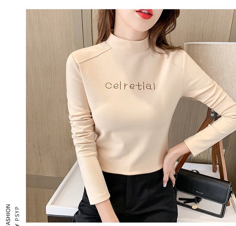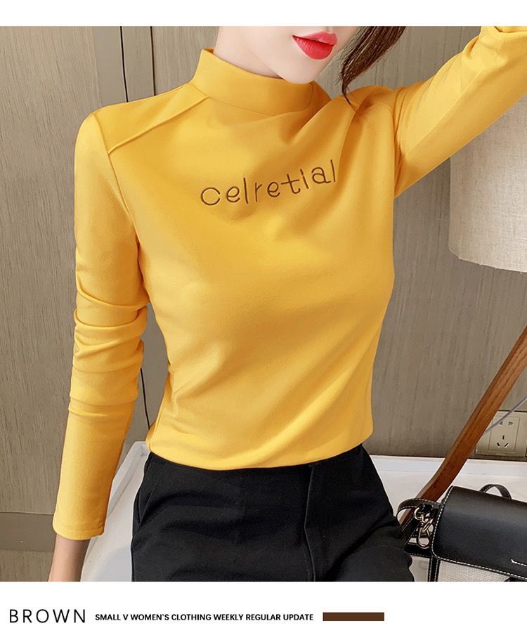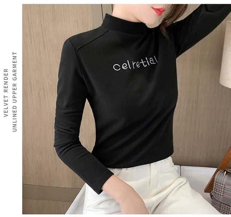 单/两件装2020秋冬双面德绒保暖打底衫半高领修身百搭长袖T恤女