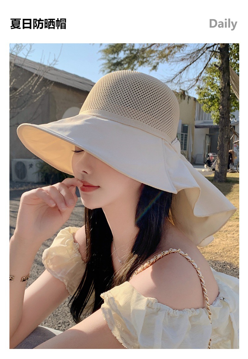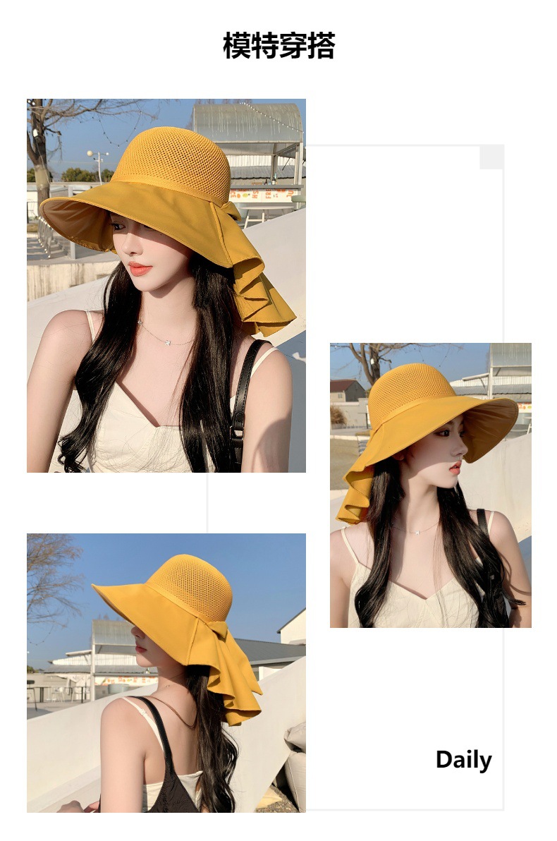 ZQ-T1-M2271日本UV遮阳帽女夏天太阳帽子大檐披肩蝴蝶结渔夫帽潮