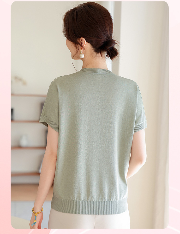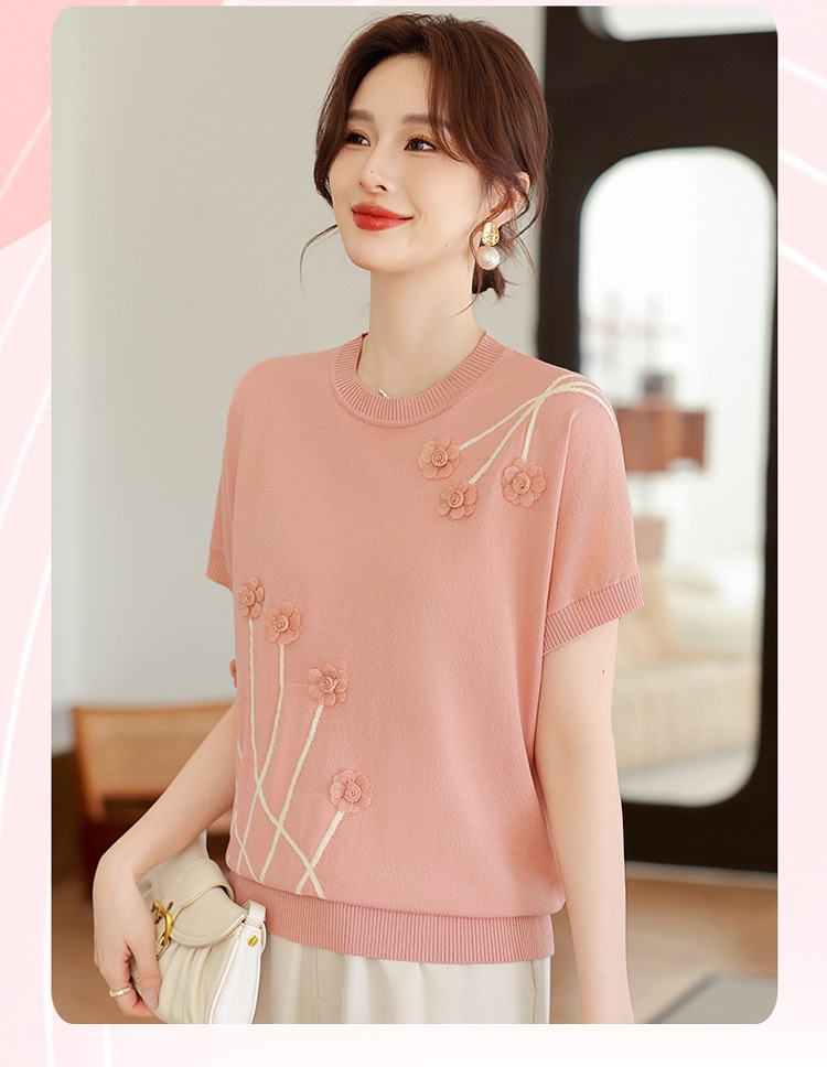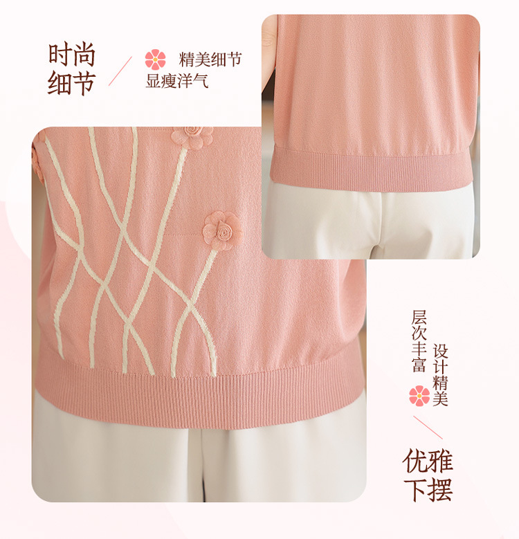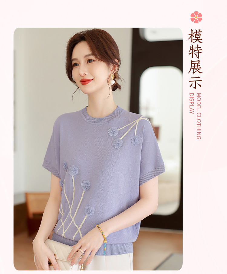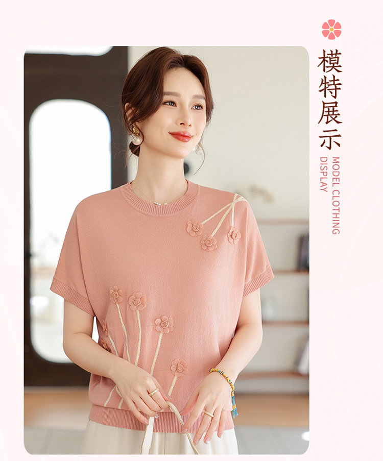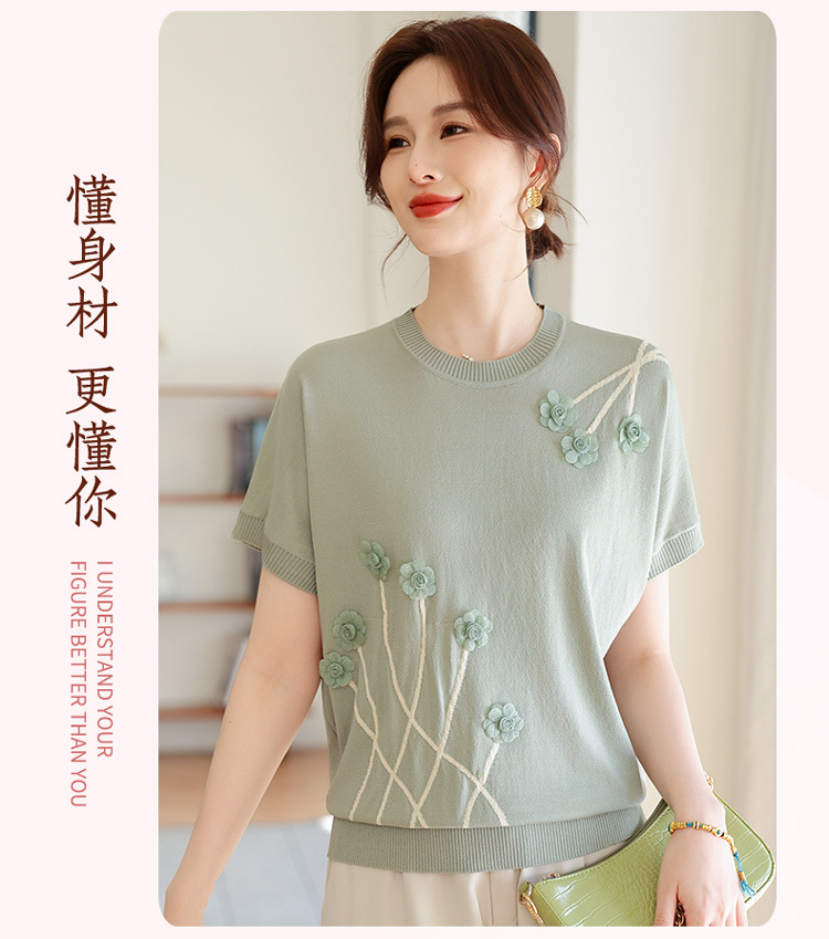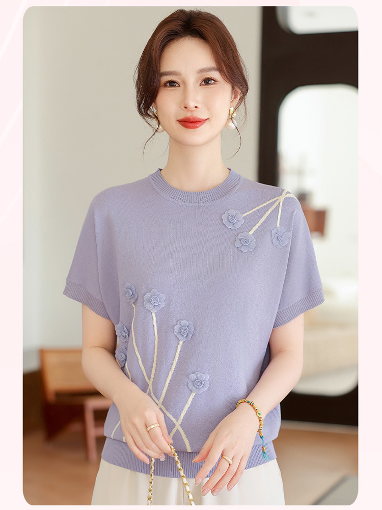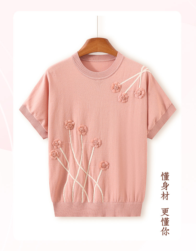 W052-2516-75-138妈妈夏装短袖绣花T恤2025新款洋气中老年女高档冰丝小衫薄款上衣