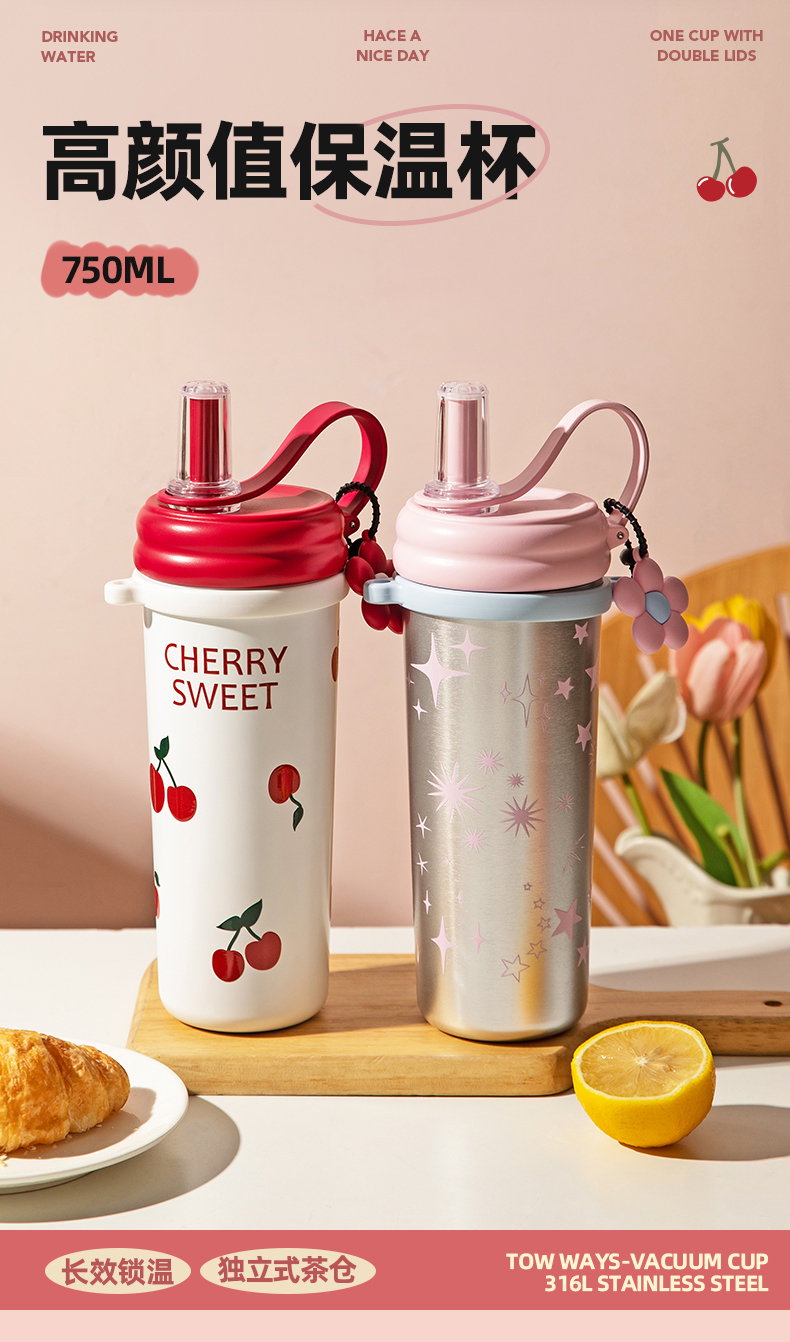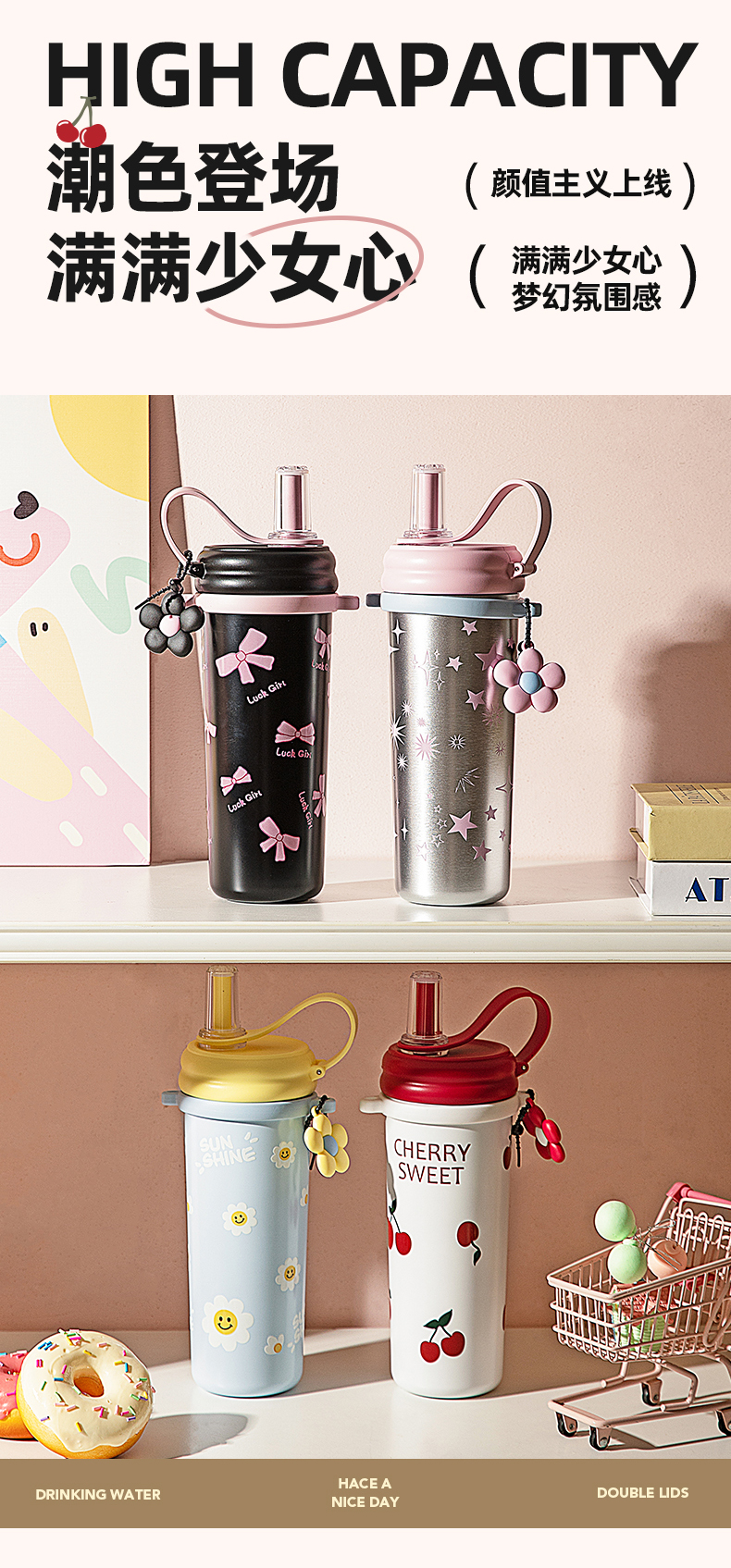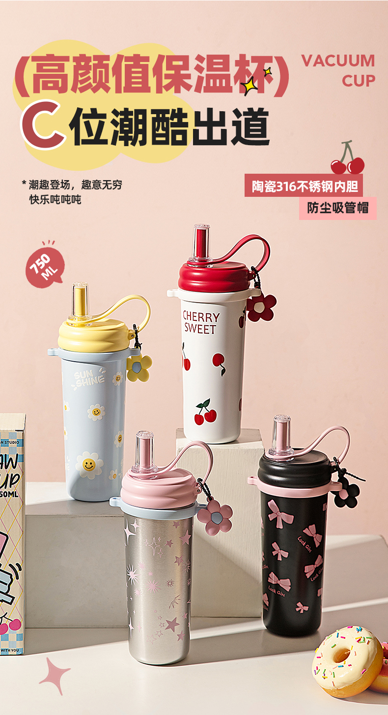 摩登主妇高颜值吸管保温杯女2024新款大容量水杯学生上学专用杯子