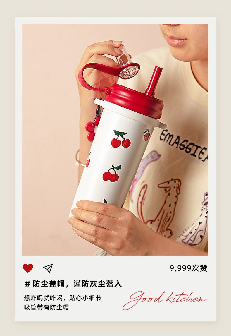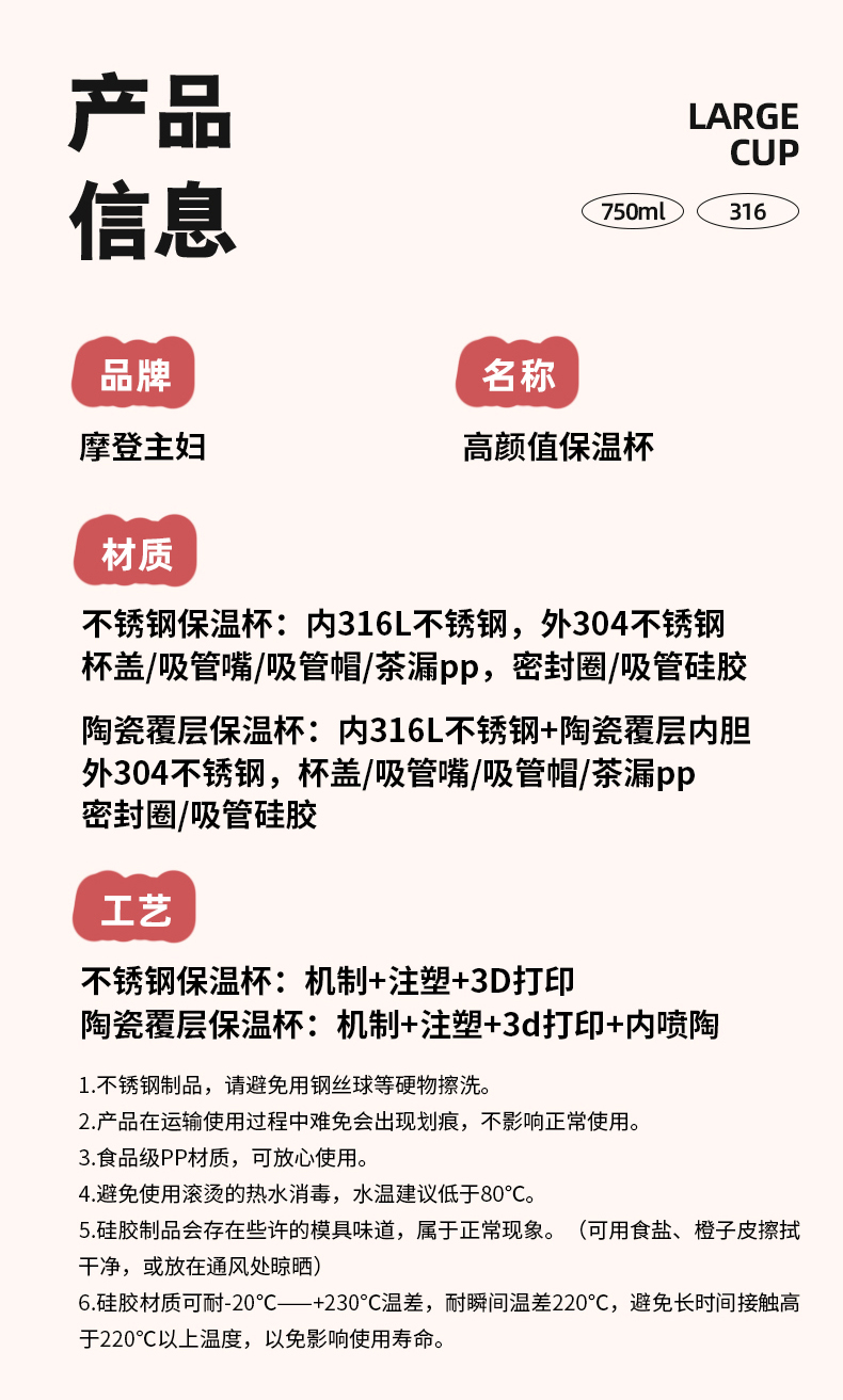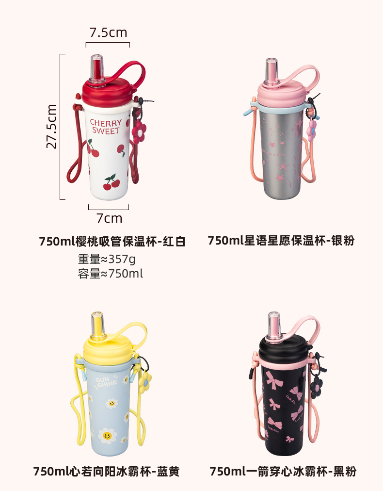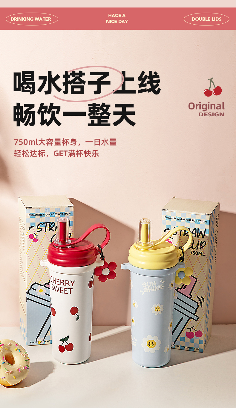 摩登主妇高颜值吸管保温杯女2024新款大容量水杯学生上学专用杯子