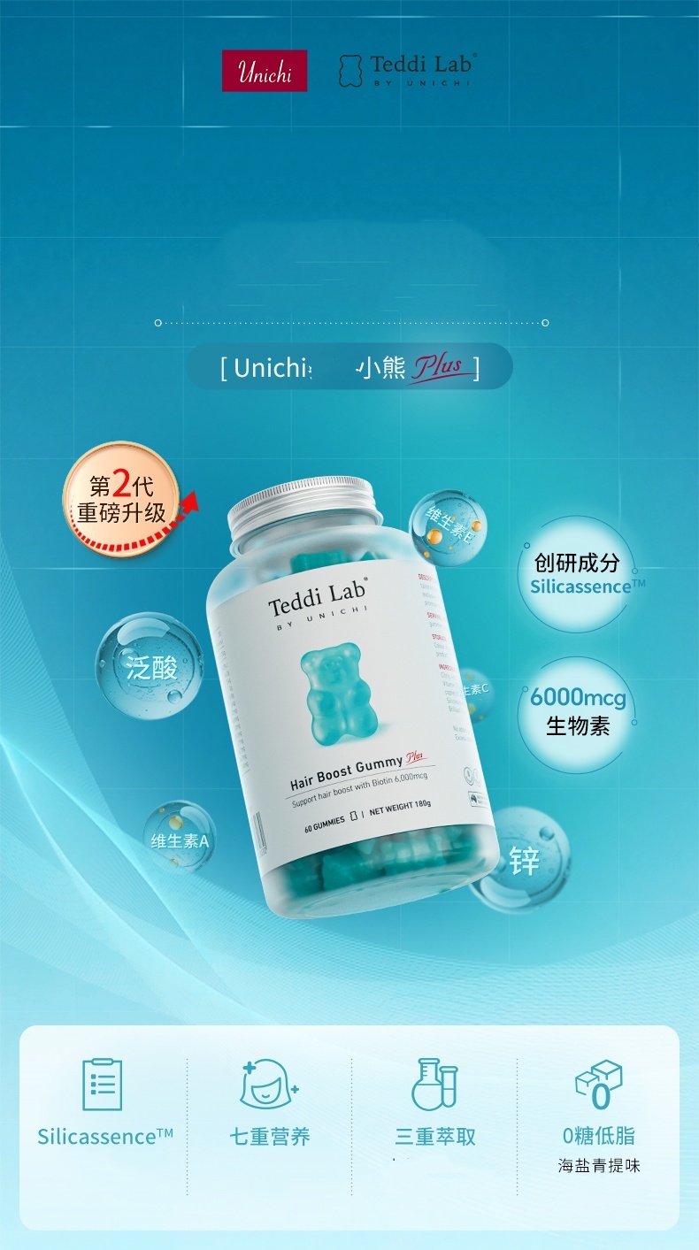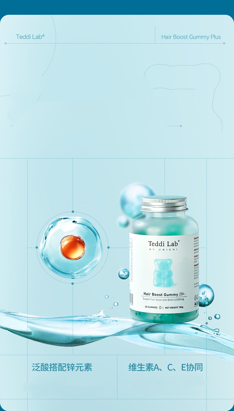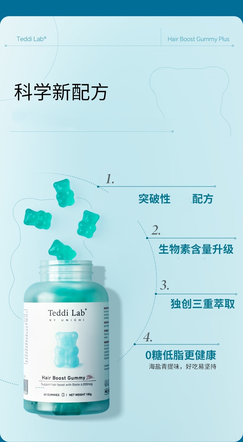 【跨境】澳洲UNICHI 海盐小熊软糖2.0升级版PLUS 60粒/瓶 生物素维生素(t效期到28年2月)