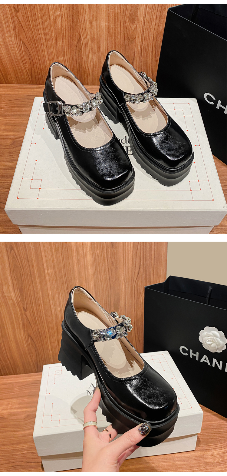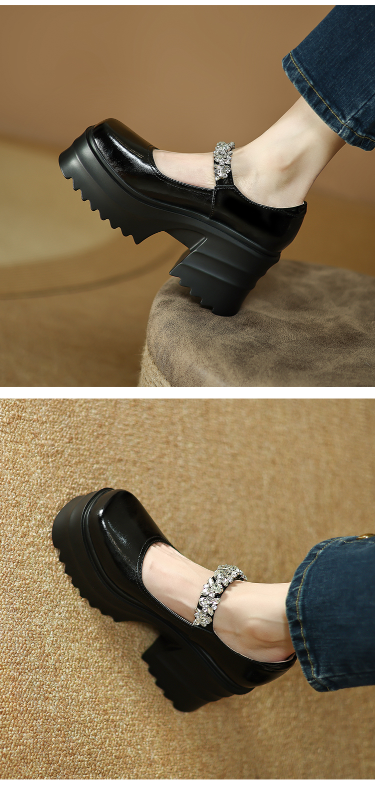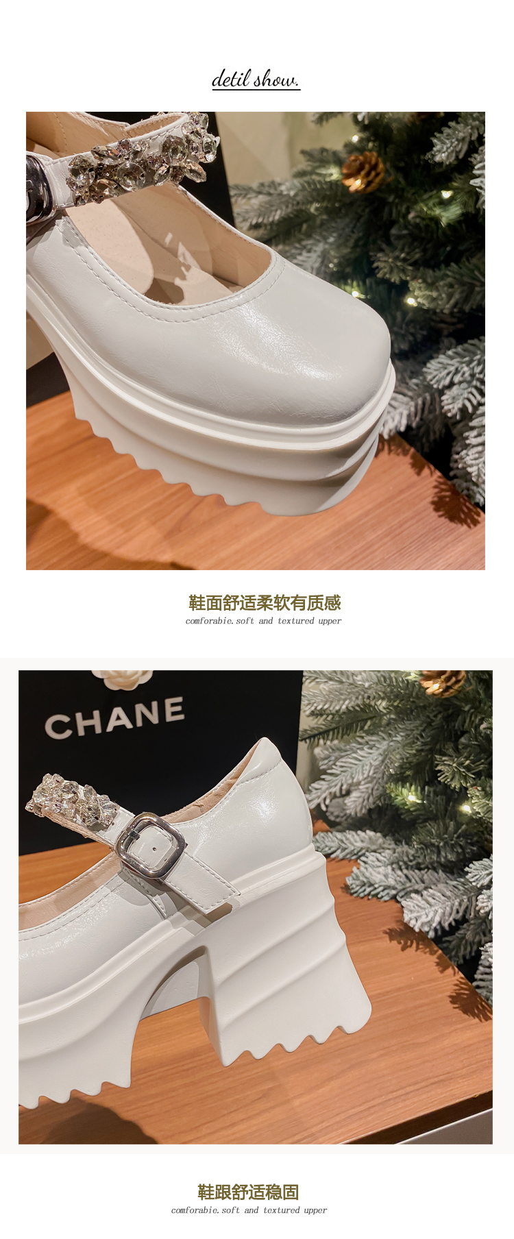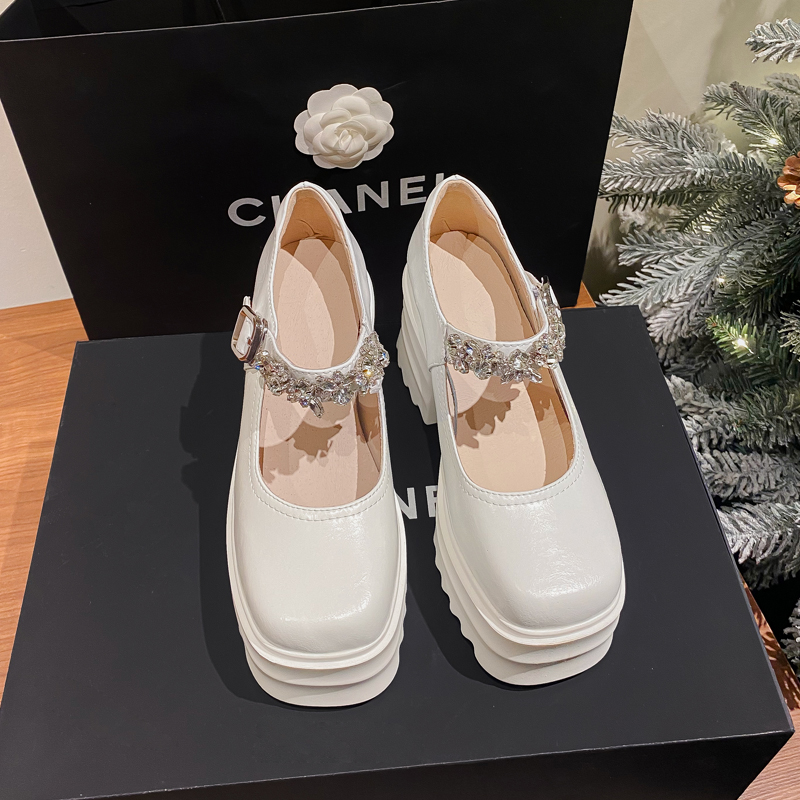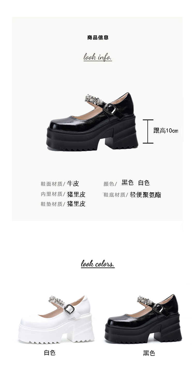 舒适减龄,厚底增高钉珠平头玛丽珍皮鞋ZM-M2879