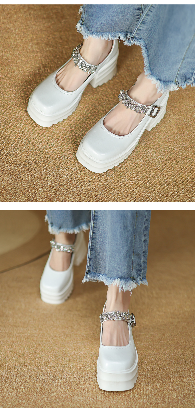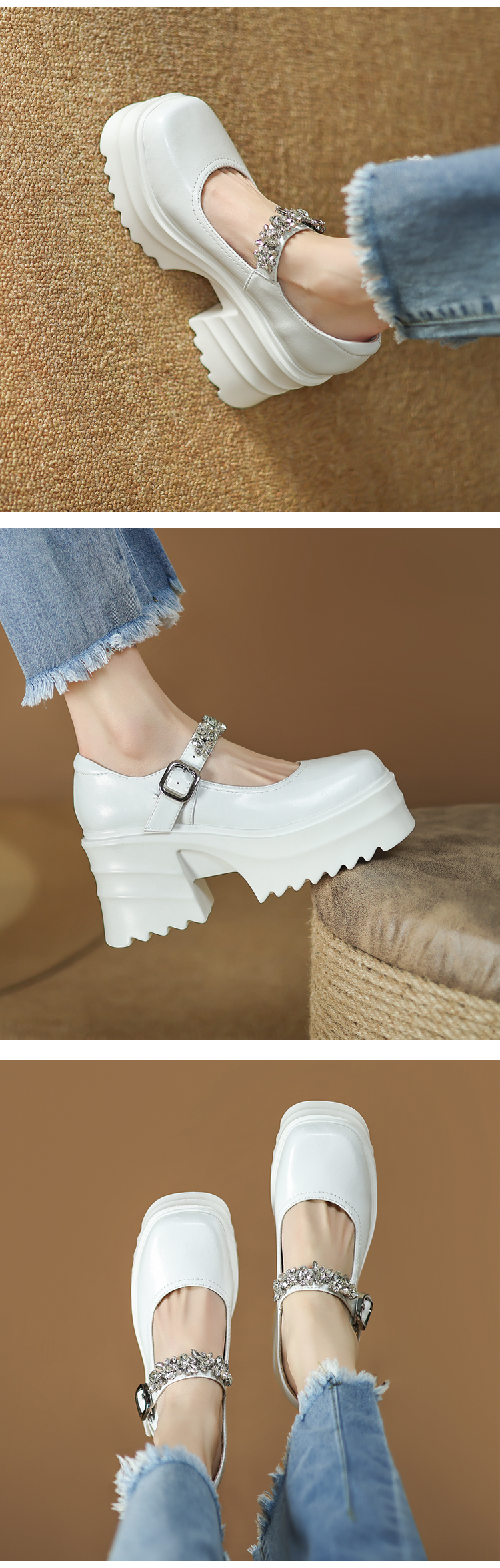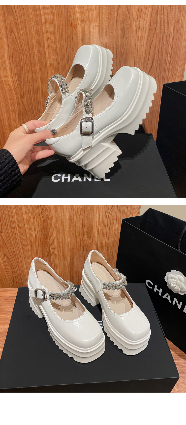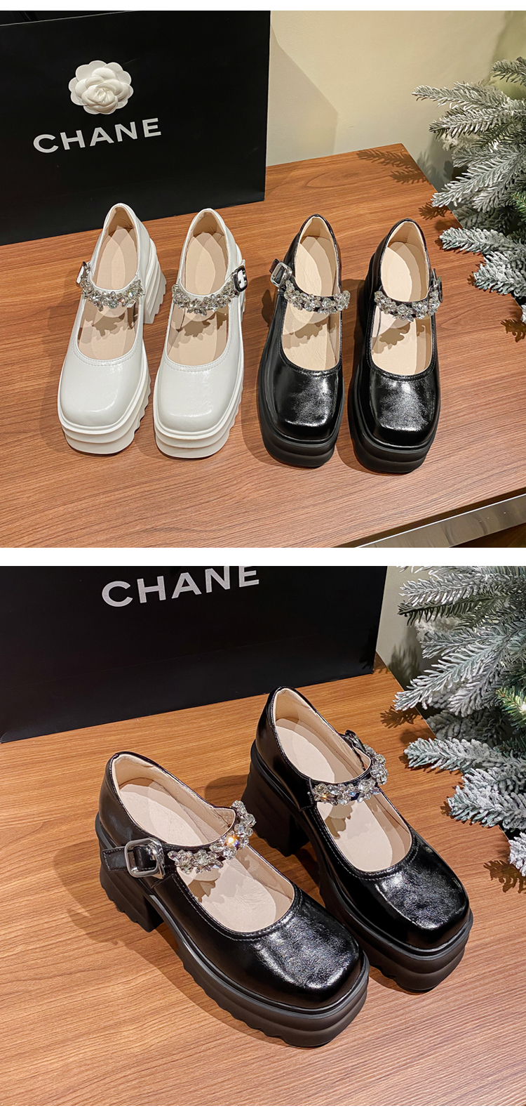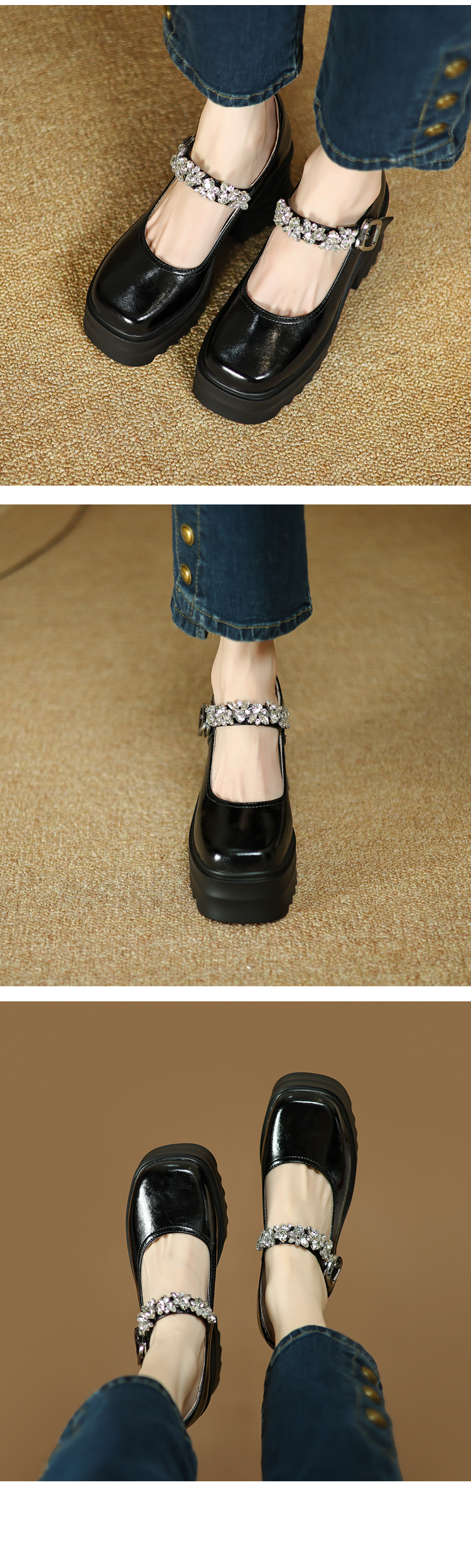 舒适减龄,厚底增高钉珠平头玛丽珍皮鞋ZM-M2879