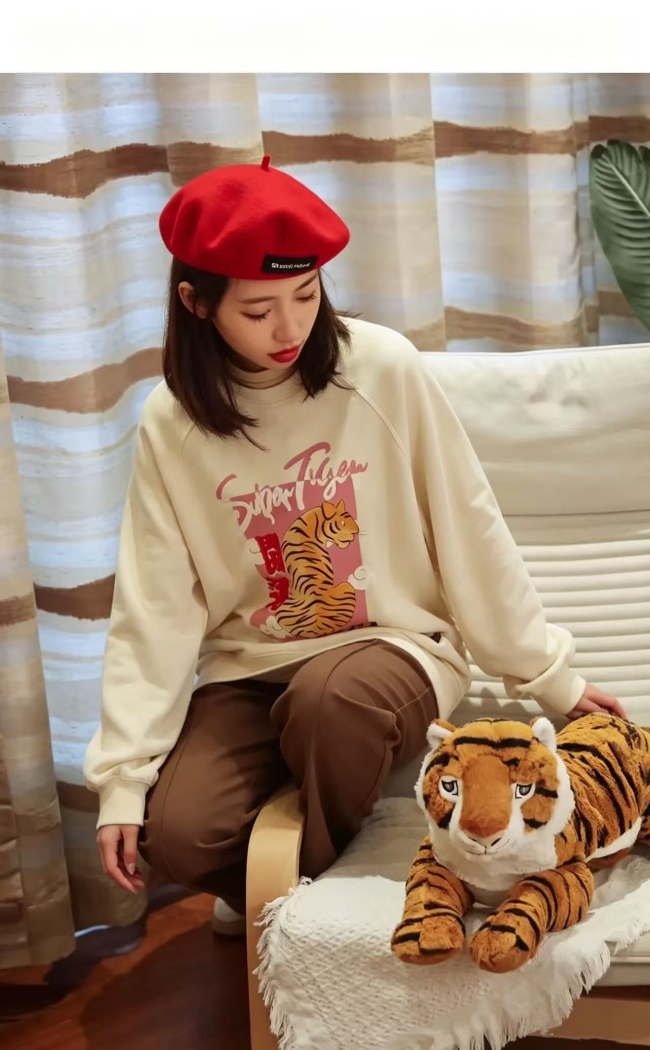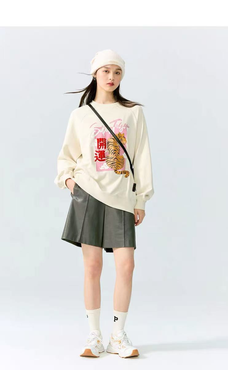 迎418福利价【太平鸟】微脏 中国风宽松廓形长袖圆领毛圈卫衣(剪标)-喜出