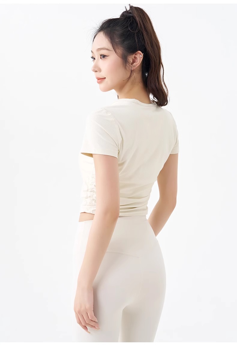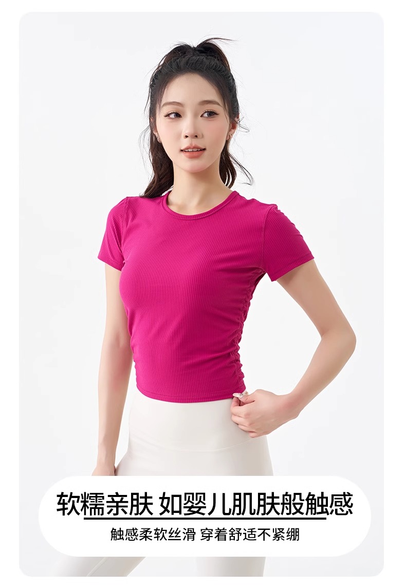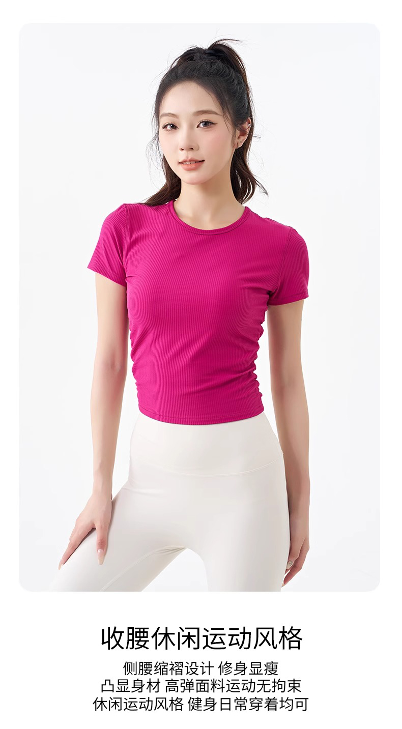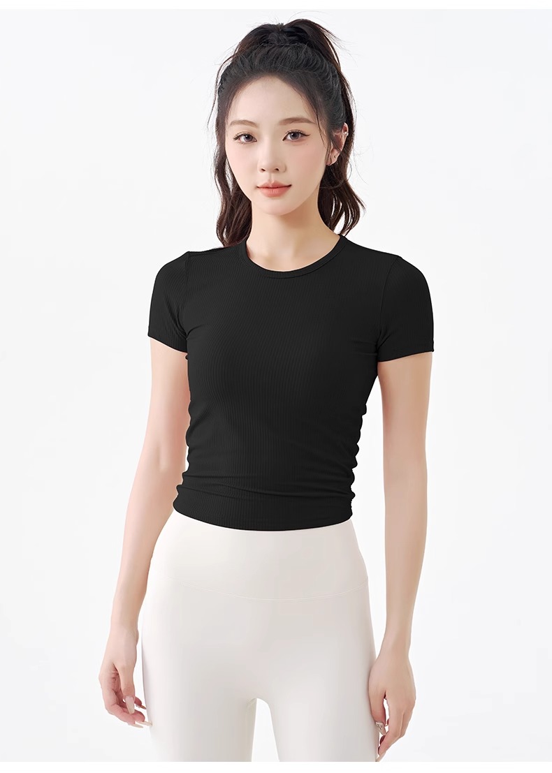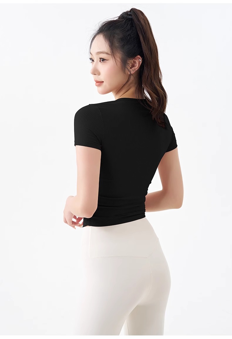 跃牌【倚窗听雨】系列 瑜伽服女短袖罗纹跑步健身t恤DA63(无胸垫)