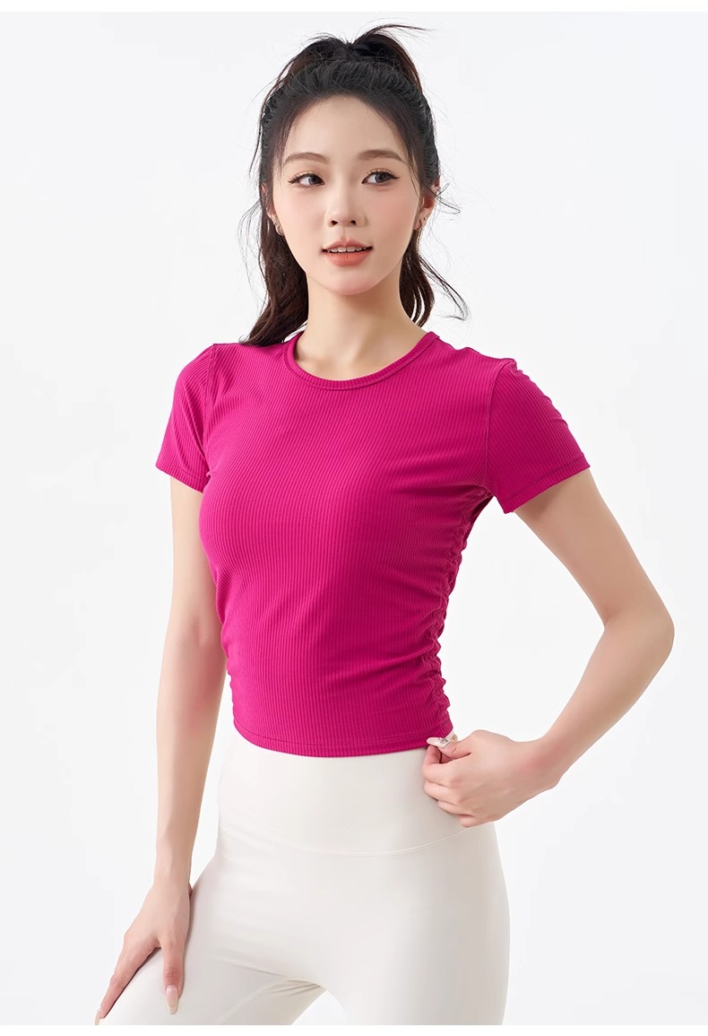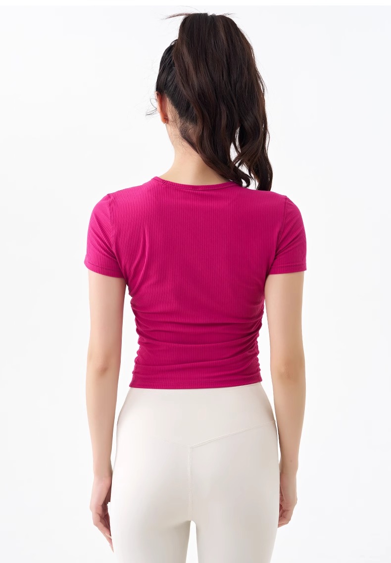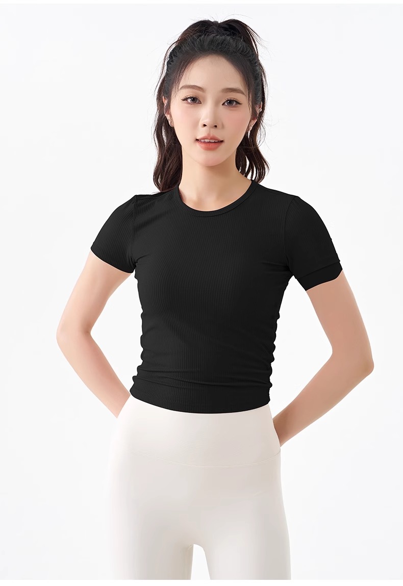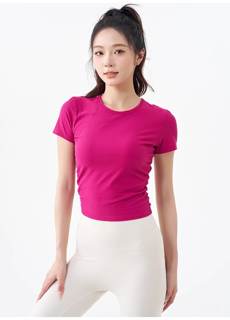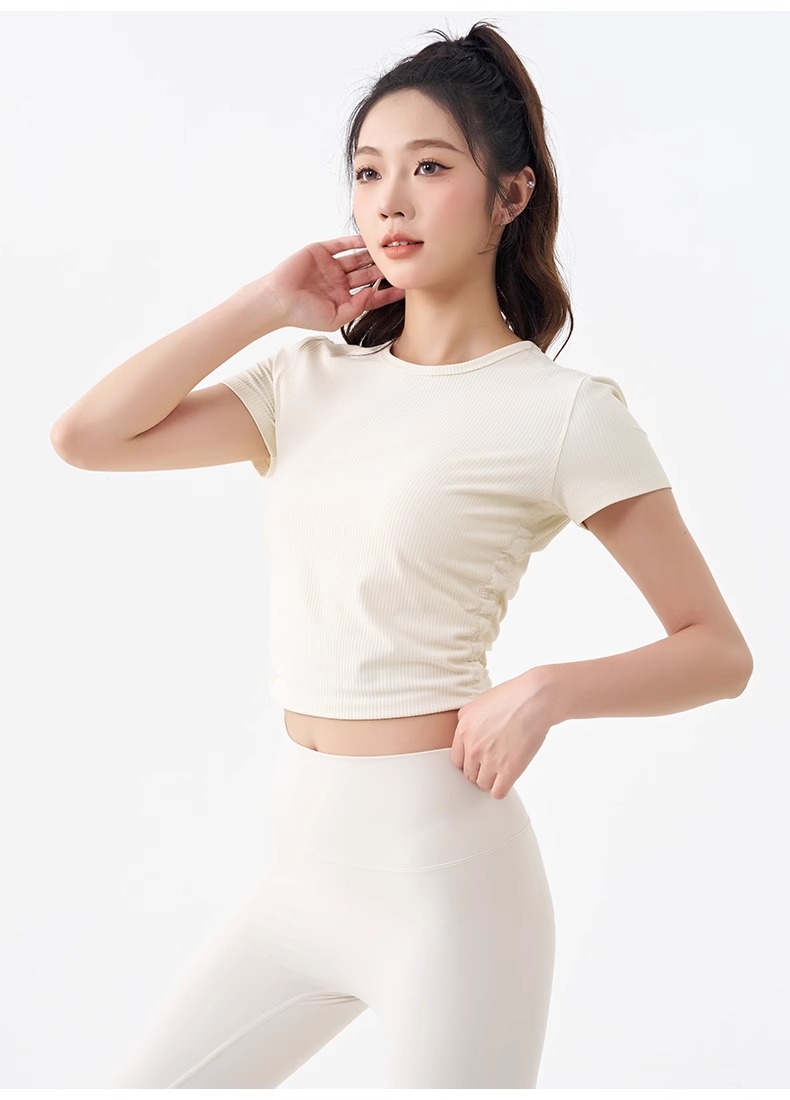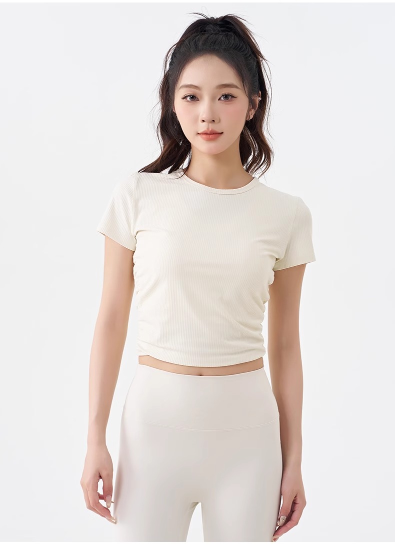 跃牌【倚窗听雨】系列 瑜伽服女短袖罗纹跑步健身t恤DA63(无胸垫)