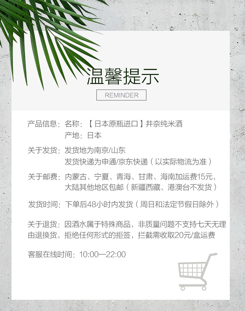 热卖中!!【日本原瓶进口】日本清酒 井奈15度纯米酒 720ml