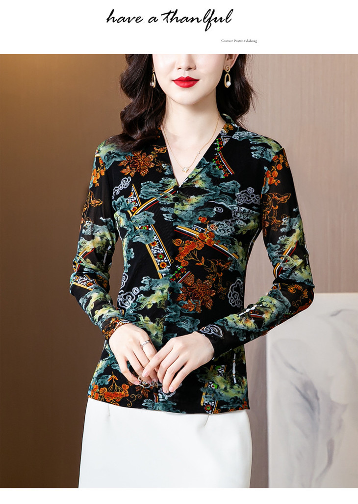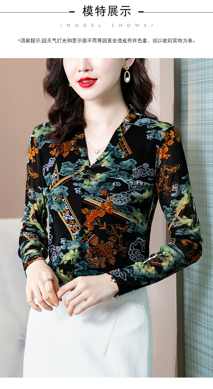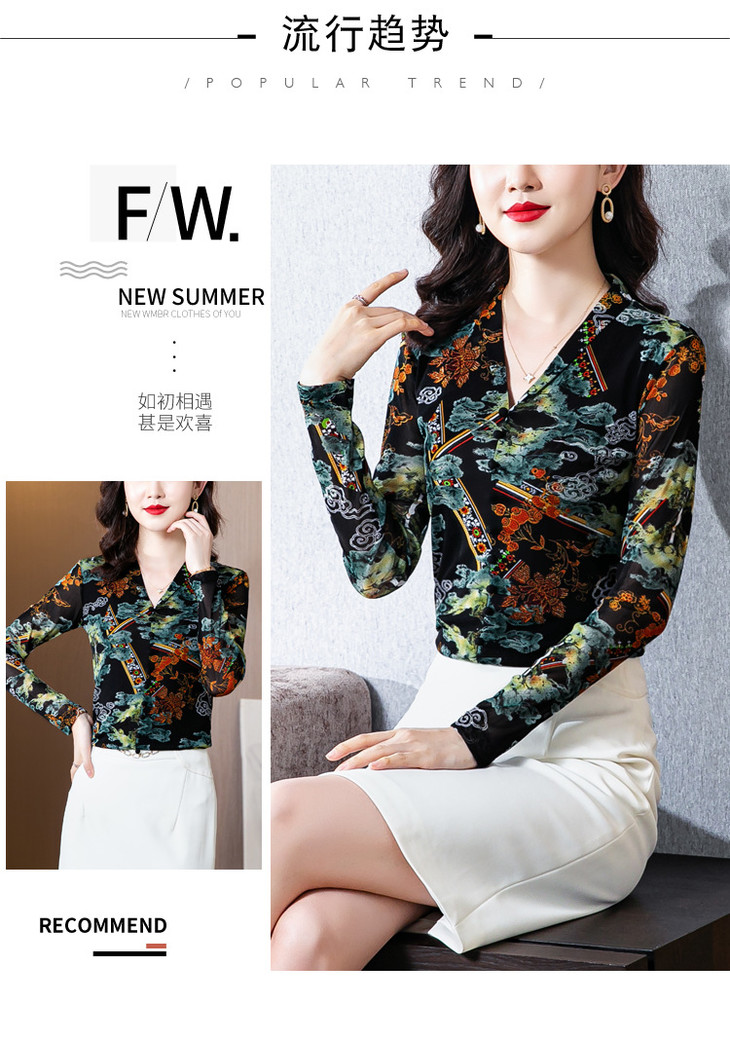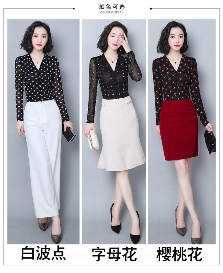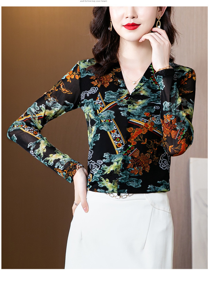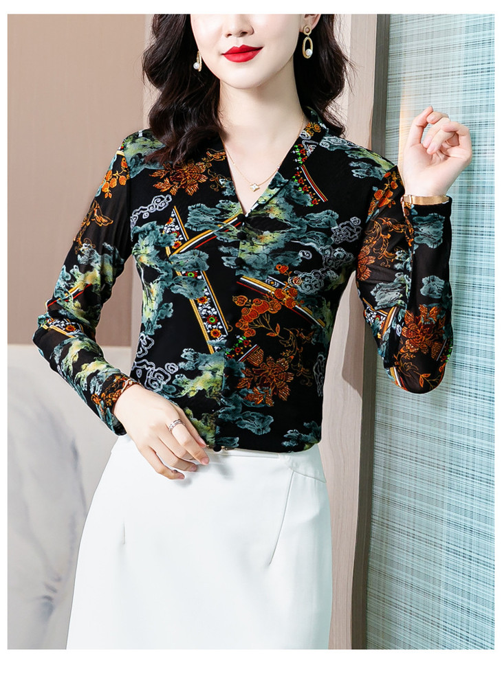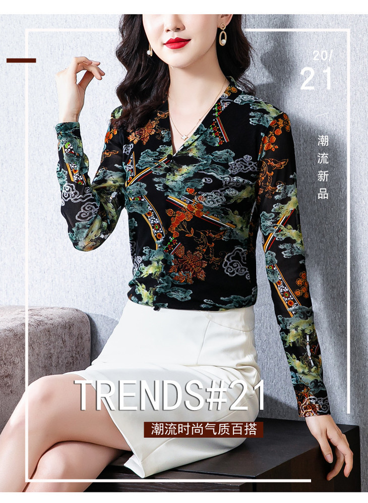 MZ 116295新款修身网纱长袖气质小衫