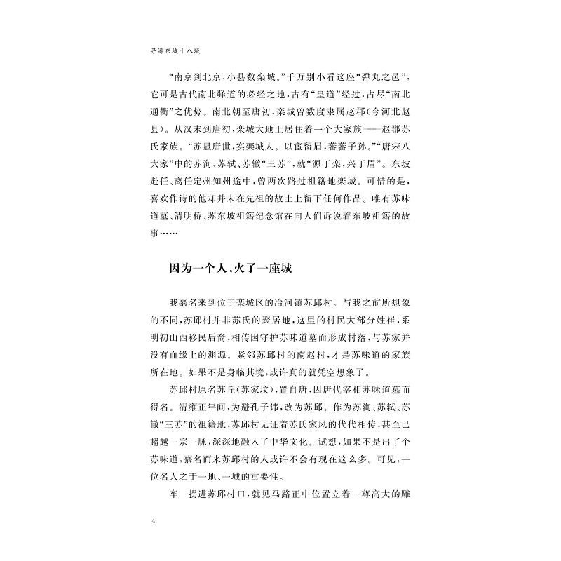 作者夏效鸿、夏策父子历时近两年,遍访苏东坡祖籍地栾城、诞生地眉州、初恋地青神、成名地东京、初仕地凤翔、两仕地杭州、超然地密州、高光地徐州、蒙难地湖州、涅槃地黄州、复起地登州、感恩地颍州、和陶地扬州、失意地定州、栖居地惠州、传学地儋州、终老地常州、长眠地郏县等18座城市的东坡遗迹,并拍下了3000多张珍贵的照片。宛如追随东坡足迹的一次长途旅行,字里行间展现了常人眼中不一样的东坡、不一样的东坡之城,不难看出作者所倾注的心血和视角的独到。