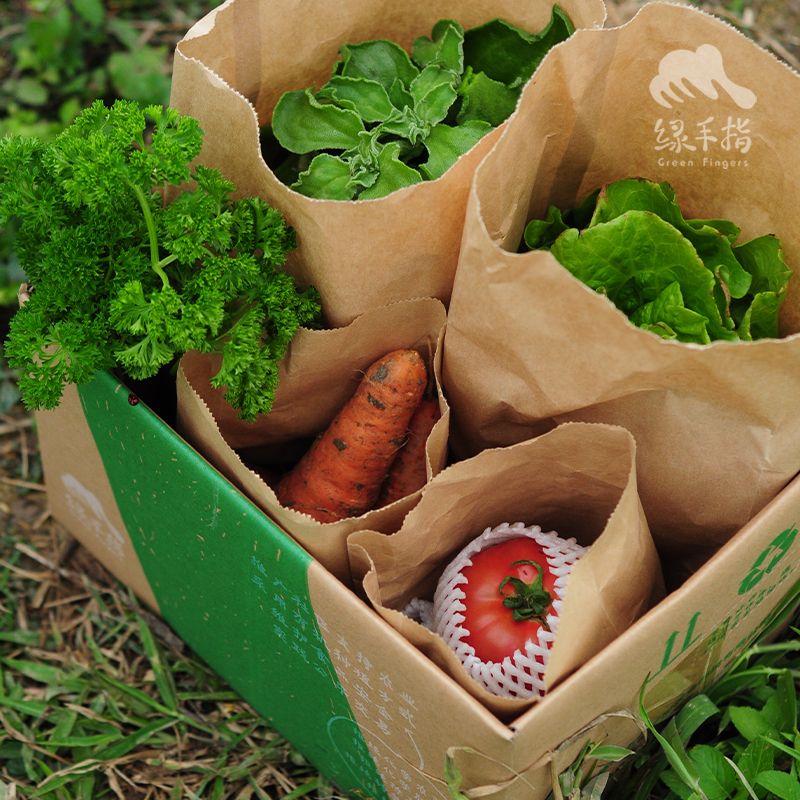 绿手指是国内最早做CSA(社会生态农业)的农场,食物不走商超,减少层层中间渠道,降低消费者获取健康食材的成本。新鲜采摘下来的蔬菜、蘑菇,制作的豆腐等等,马不停蹄地打包,送往您的家里,食物里程更短。