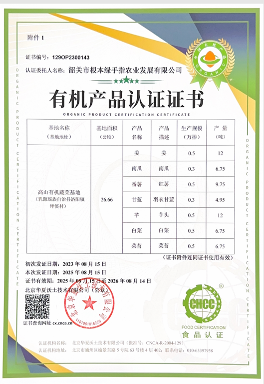中国有机认证要做单品检测,费用高,我们部分选择了水果、瓜果、根茎、叶菜若干品种作为代表进行认证。