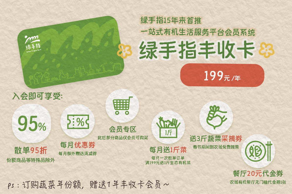 购买蔬菜年份额赠送丰收会员卡一张:
