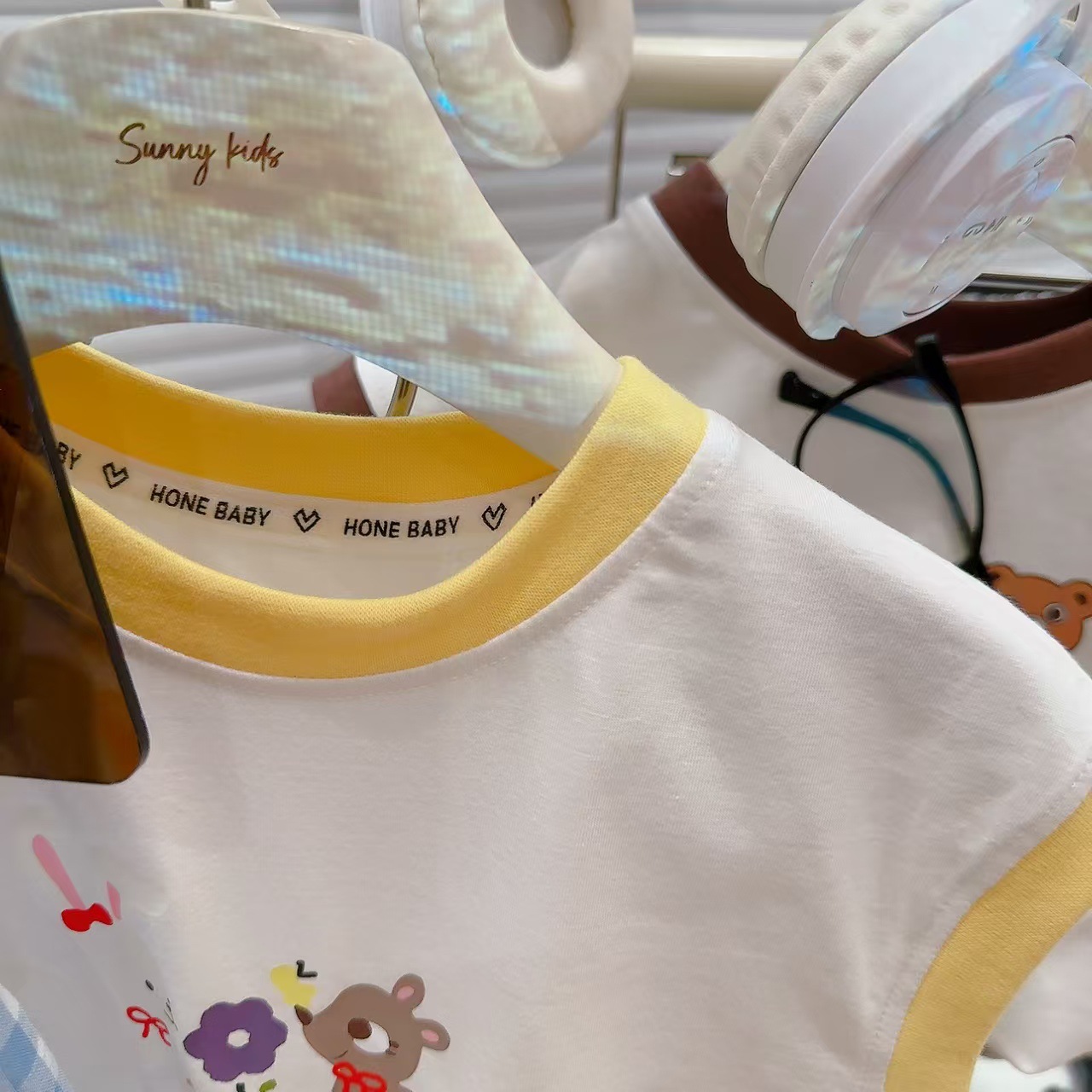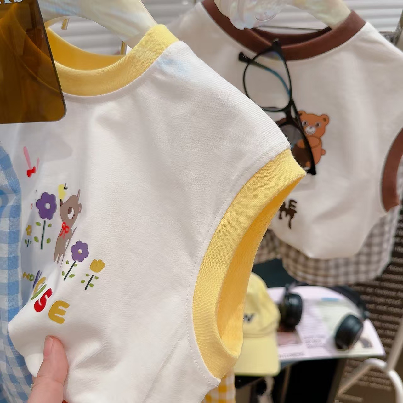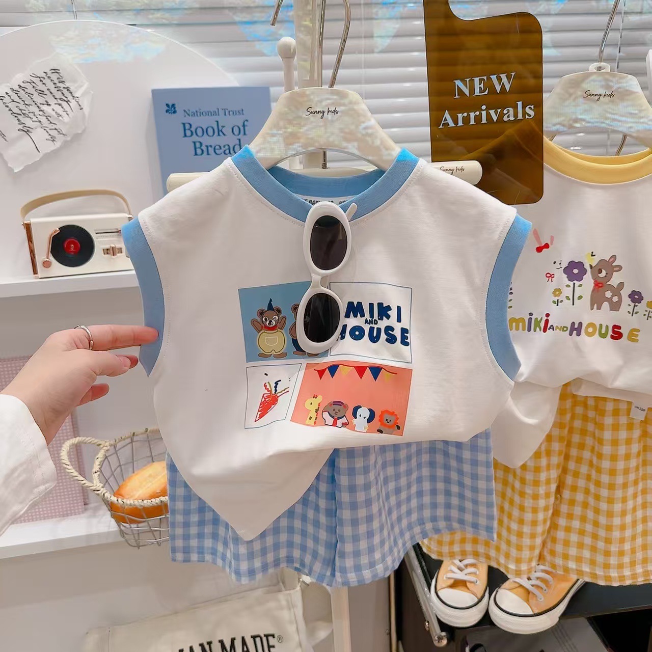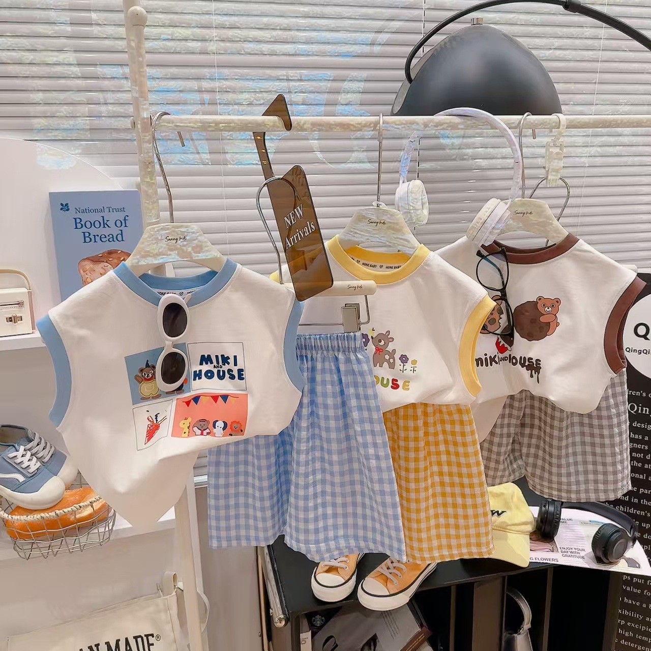 【格子T恤短裤套装,清凉百搭必备!】夏季新款百搭涂鸦 背心格子t恤短裤两件套 男女童套装 莱卡棉面料 舒适透气-QQ