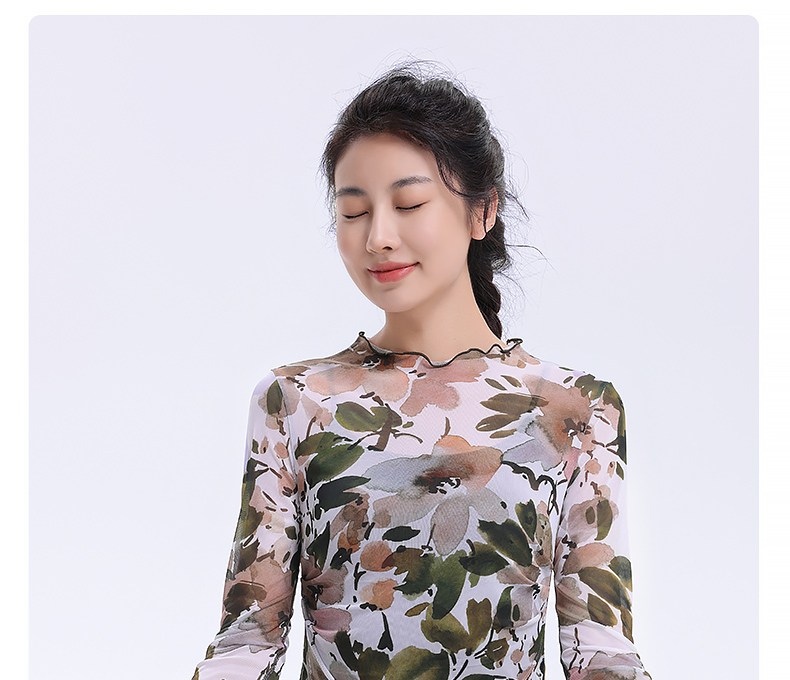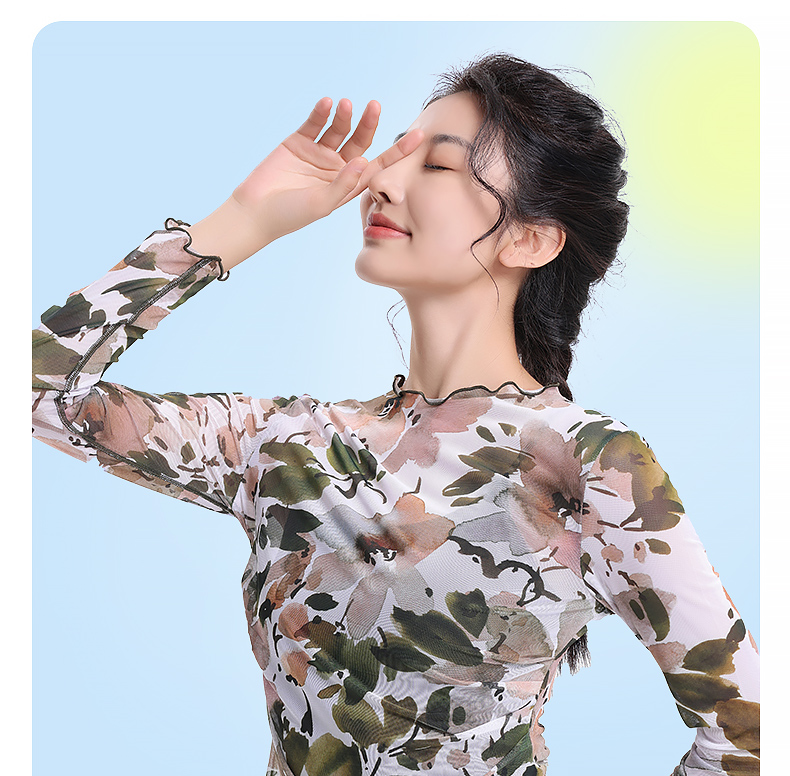 梵美人 F2227 瑜伽罩衫网纱 无胸垫 印花网纱