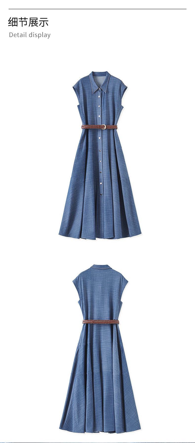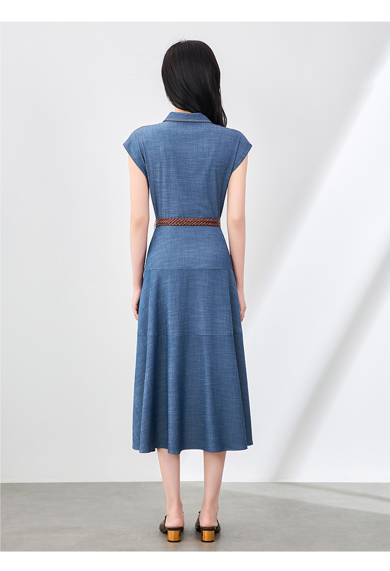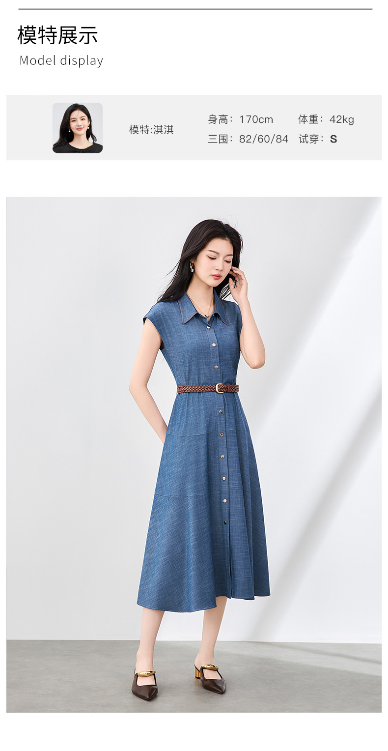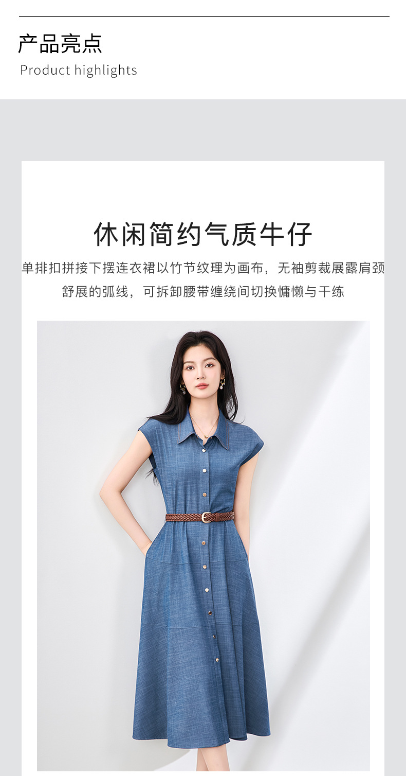「高货wl」全新升级【铂金会员358/天猫479/差价121】(84858)洛诗琳时尚翻领无袖连衣裙2025夏季气质通勤收腰牛仔裙