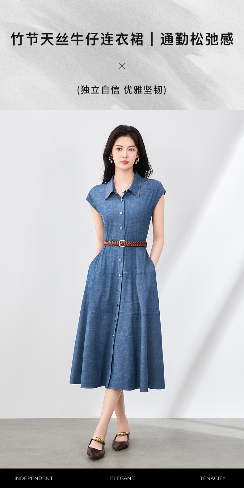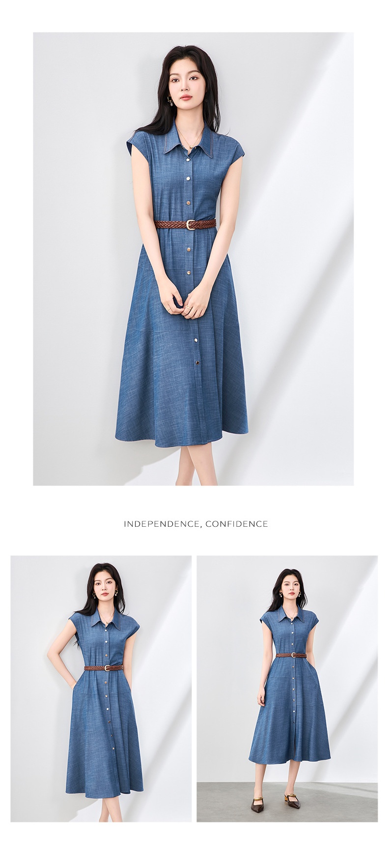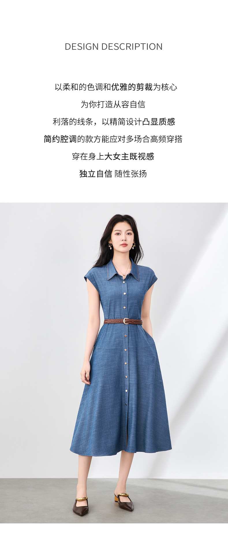 「高货wl」全新升级【铂金会员358/天猫479/差价121】(84858)洛诗琳时尚翻领无袖连衣裙2025夏季气质通勤收腰牛仔裙
