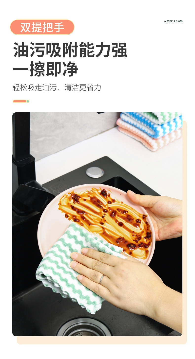 【强去污❗强效吸水不留痕】珊瑚绒波浪纹抹布厨房吸水洗碗布清洁布阳离子加厚抹布百洁布。xa