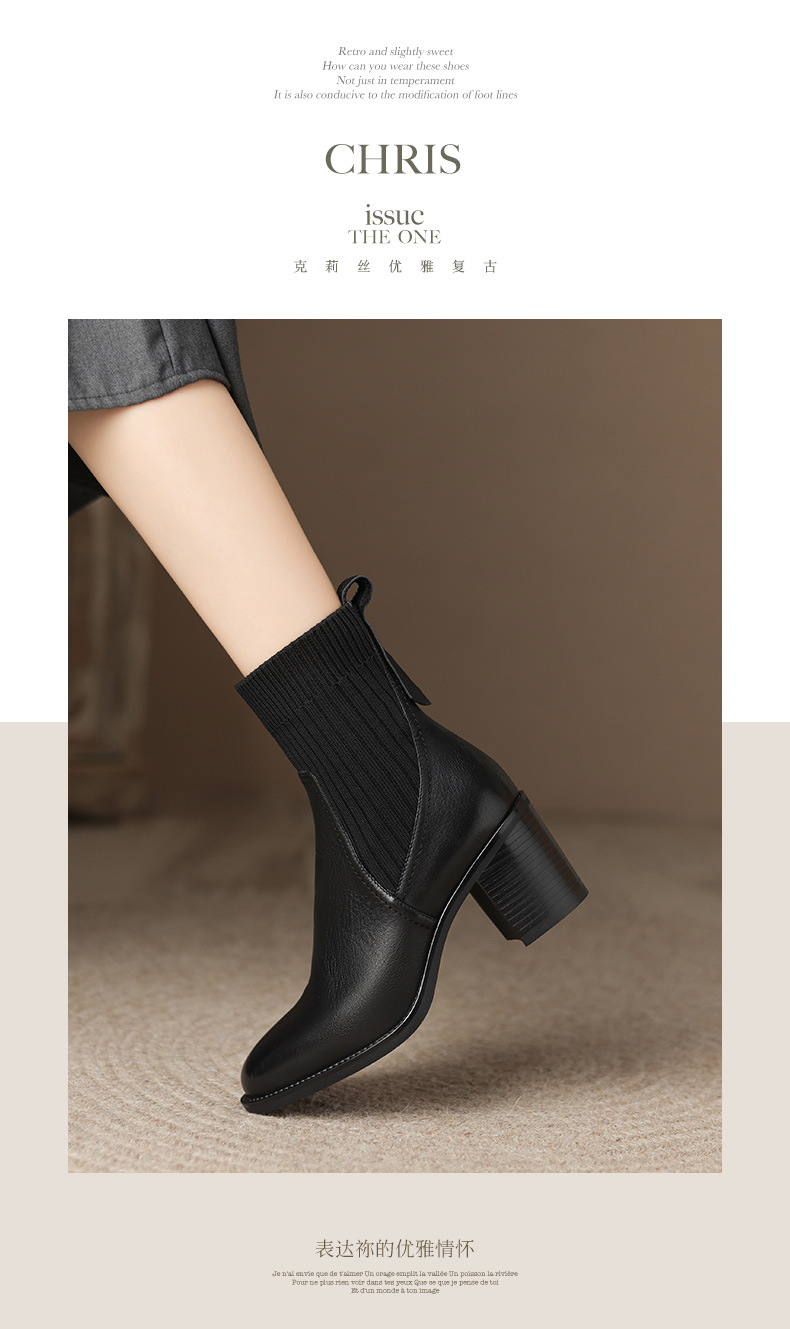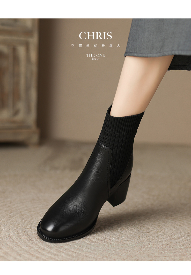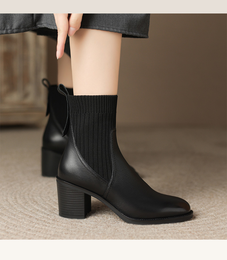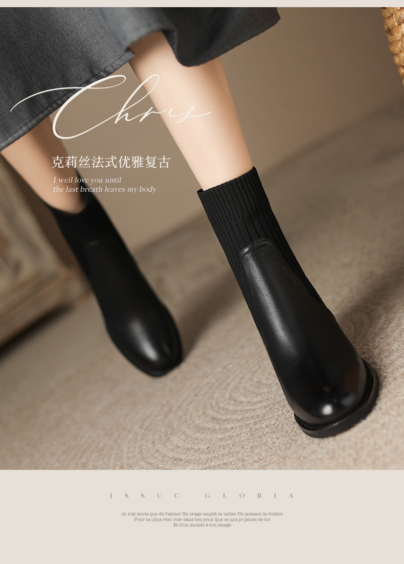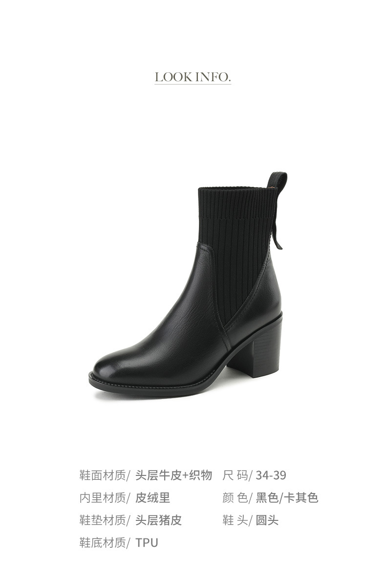 OLD-111英伦秋冬复古圆头毛线筒显瘦袜子靴女粗跟弹力短靴休闲黑色靴