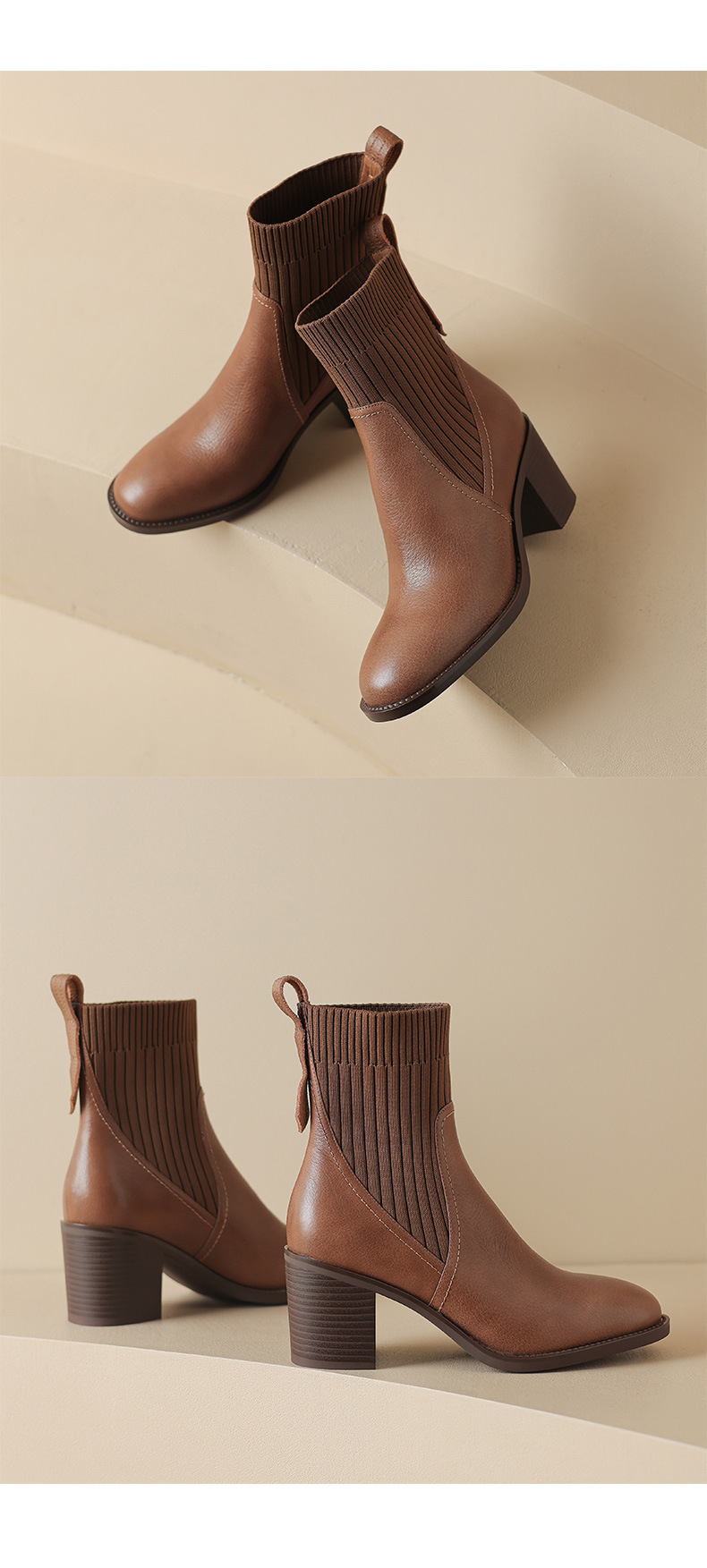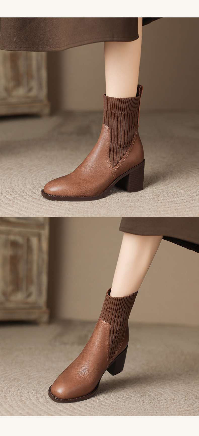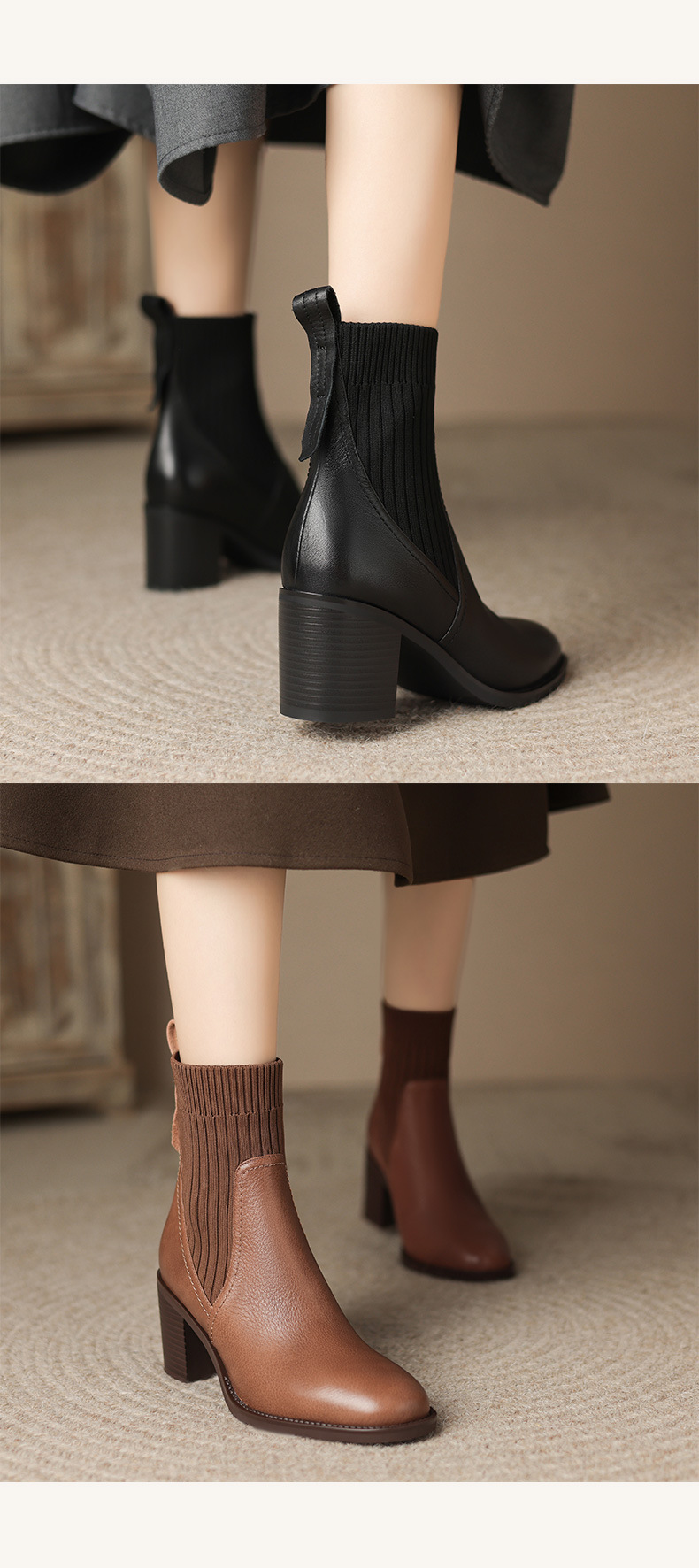 OLD-111英伦秋冬复古圆头毛线筒显瘦袜子靴女粗跟弹力短靴休闲黑色靴