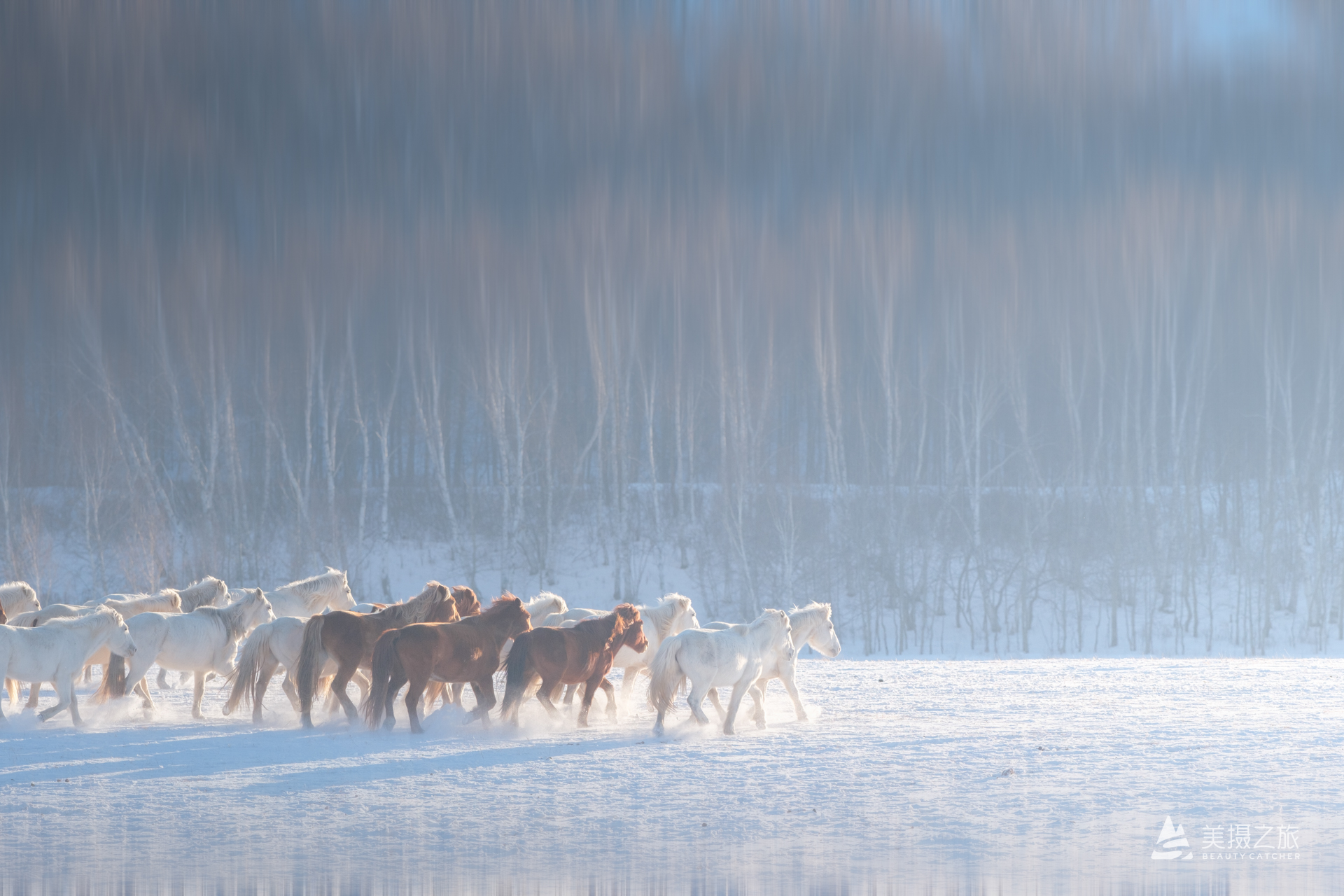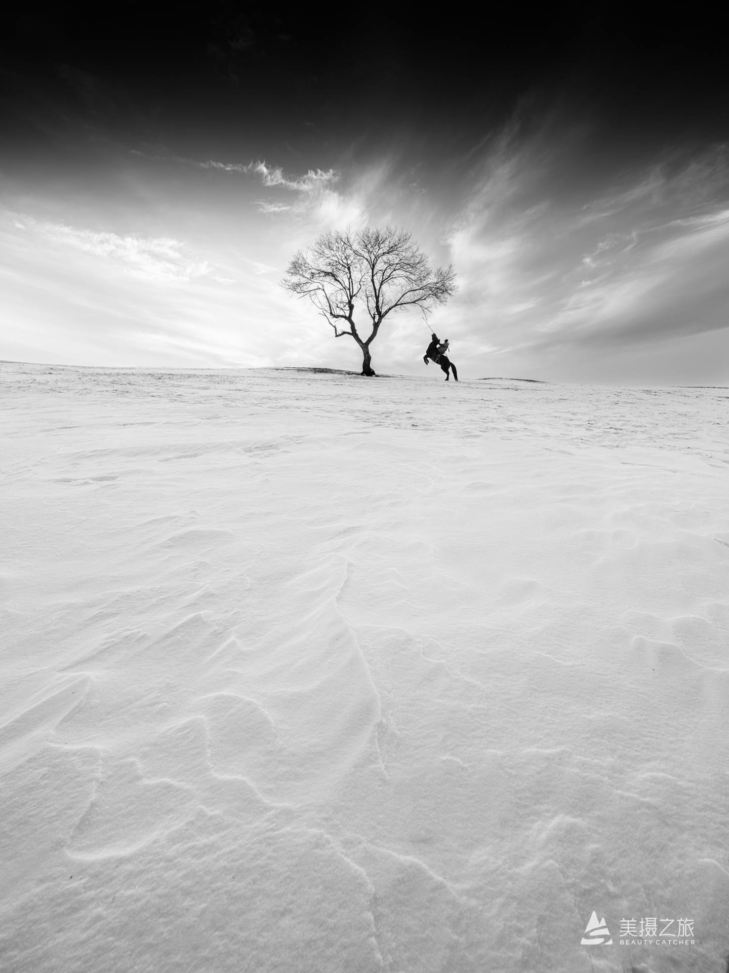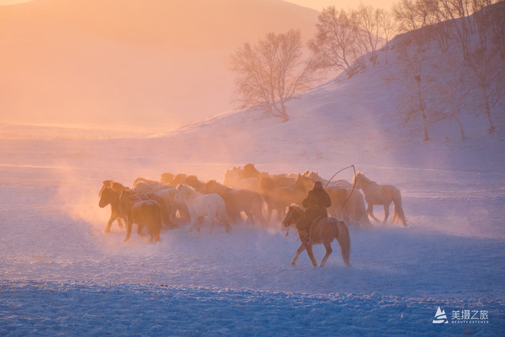 白桦林是寒冬驻守坝上的卫士,那穿梭其间的骏马就是雪原上直面寒风的战神。