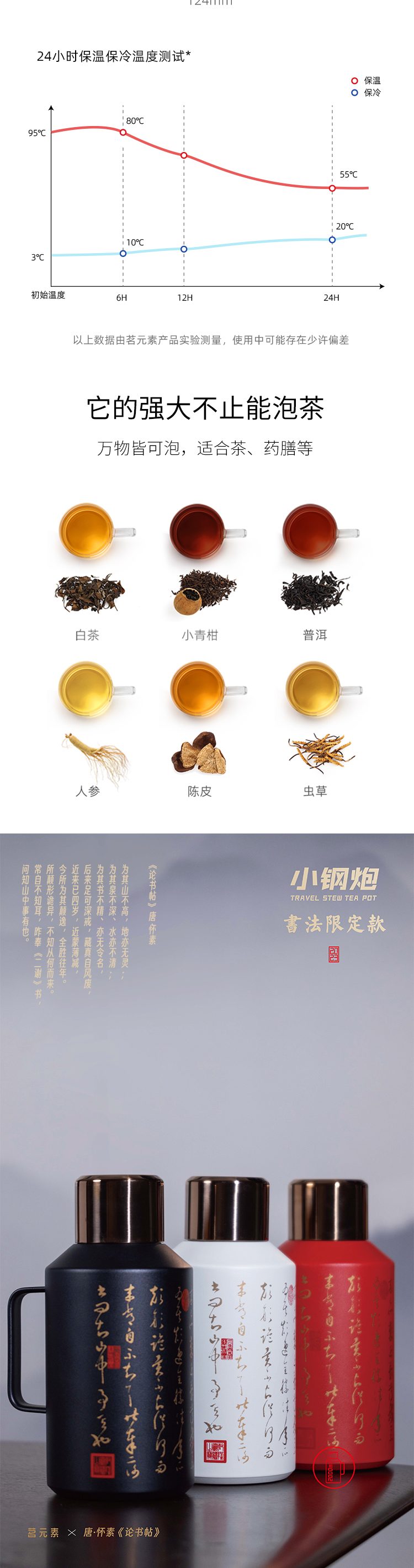茗元素 万物养1000ml焖茶壶蓄水 316不锈钢 办公室家用