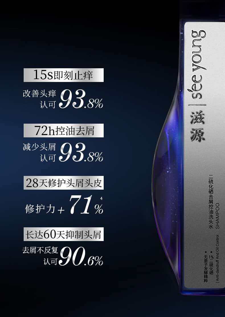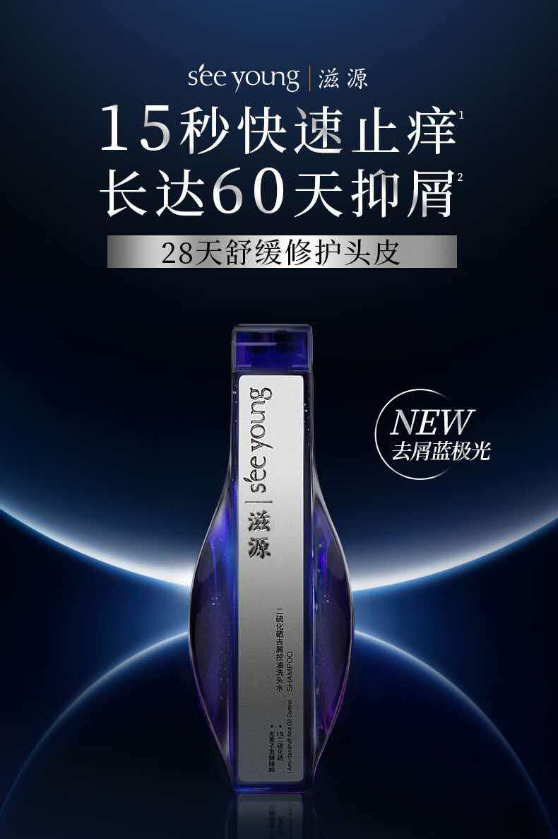 【强控屑】滋源1%二硫化硒去屑止痒无硅油蓝极光洗发水215g(热卖金榜)