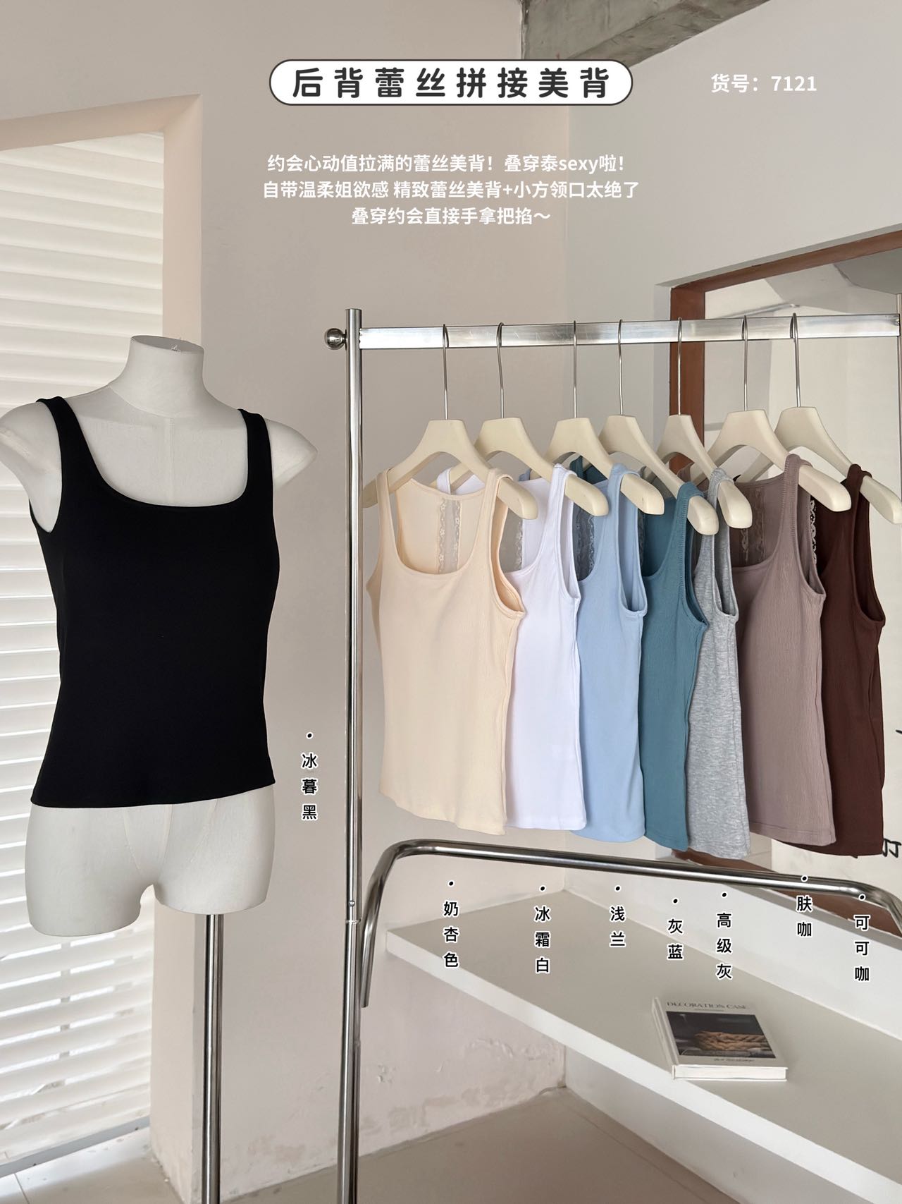 【卖点】:1.方领+蕾丝美背设计:经典方领修饰肩颈线条,打造天鹅颈既视感;后背蕾丝拼接暗藏小心机,露背不露肤,轻熟性感又不失优雅;宽肩带设计可隐藏内衣肩带,穿着更整洁美观。