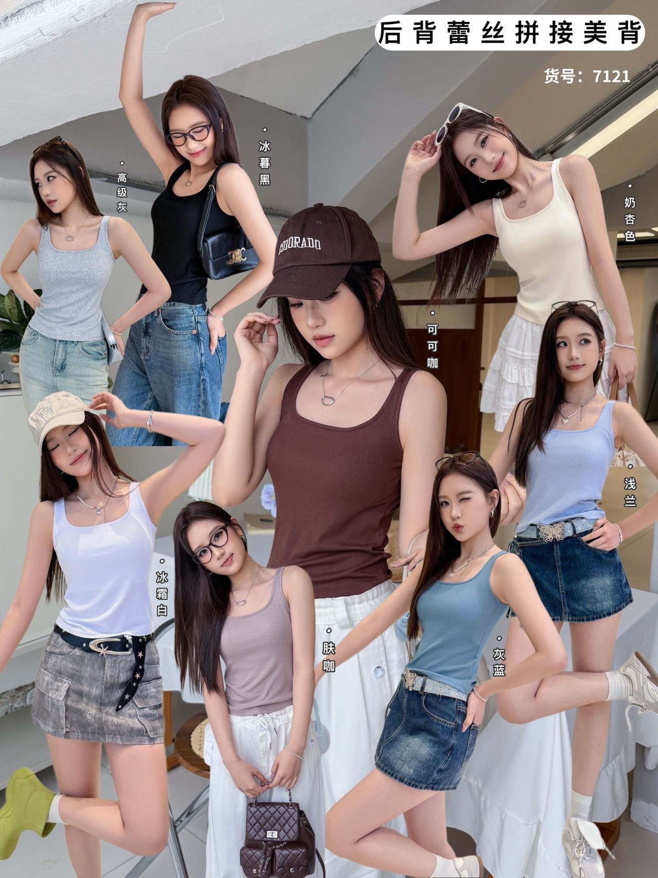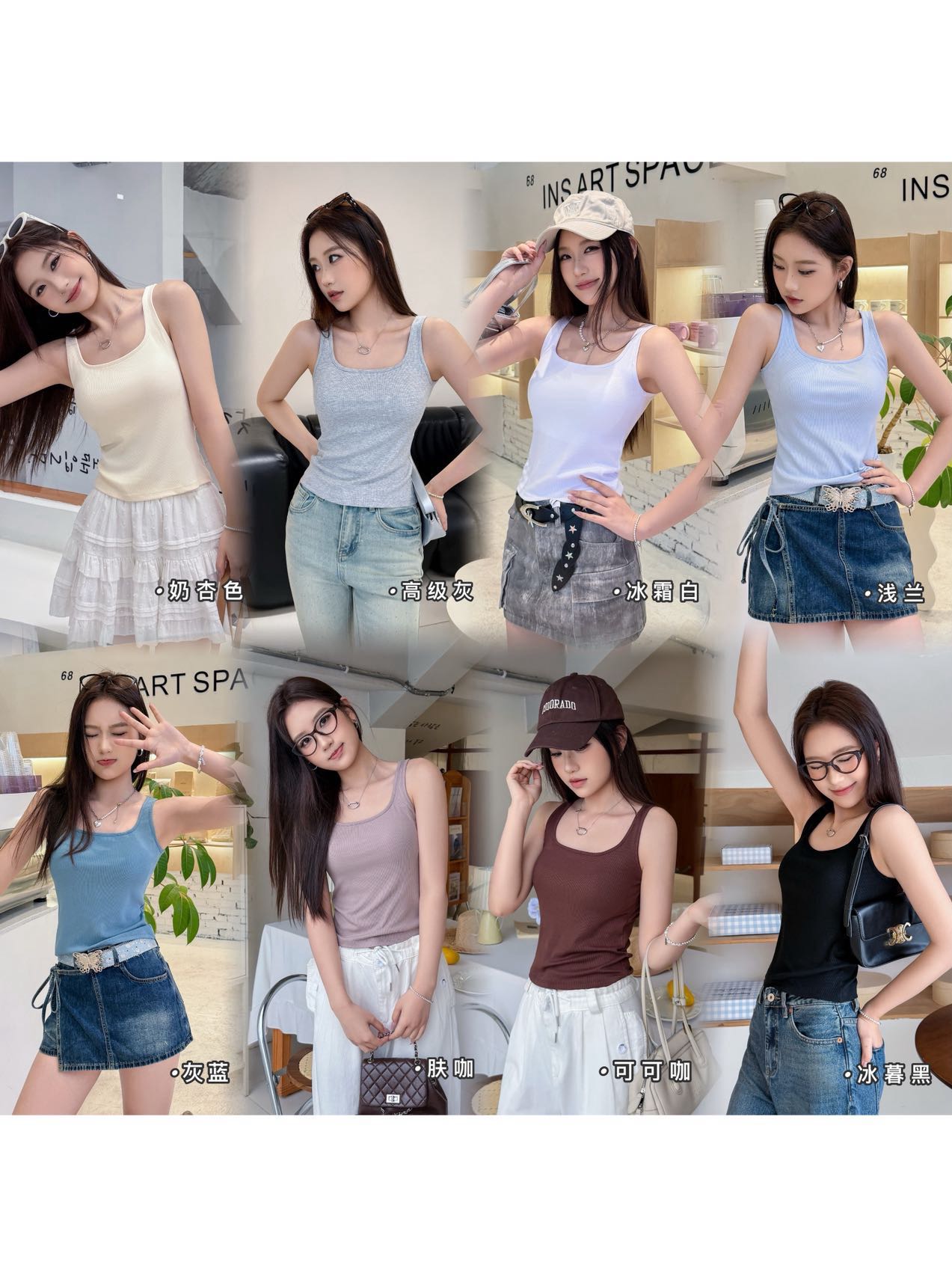 4. 多色可选+百搭属性:既有复古氛围感又有清新活力感,满足不同穿搭风格;可内搭西装、针织开衫,也能外穿搭配牛仔裤、半身裙,春夏季单穿、秋冬季内搭都合适