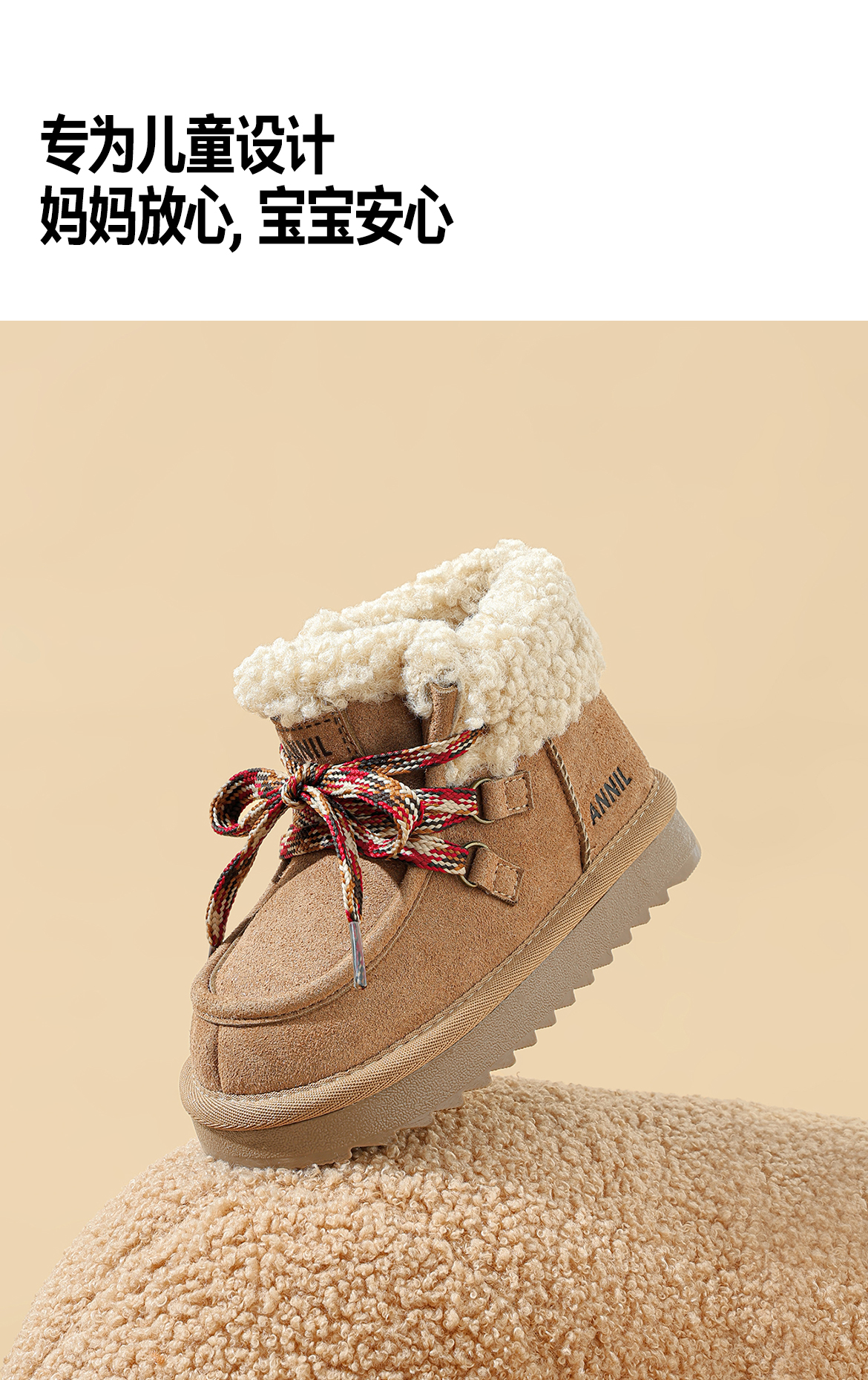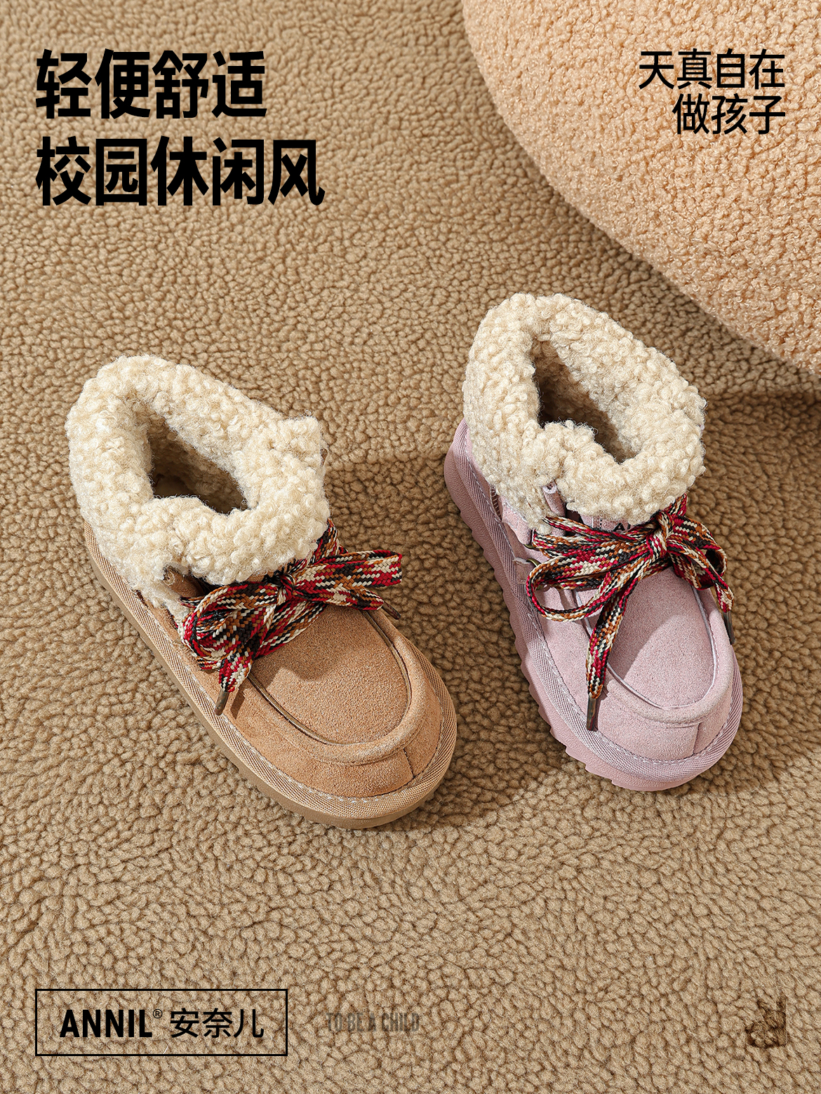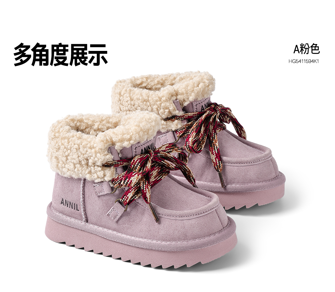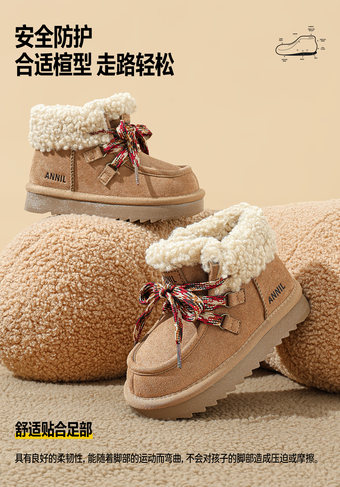 ANNIL/安奈儿童鞋女童公主保暖休闲鞋冬季加绒加厚中大童鞋可爱毛茸茸防滑蝴蝶结棉鞋HG5411594