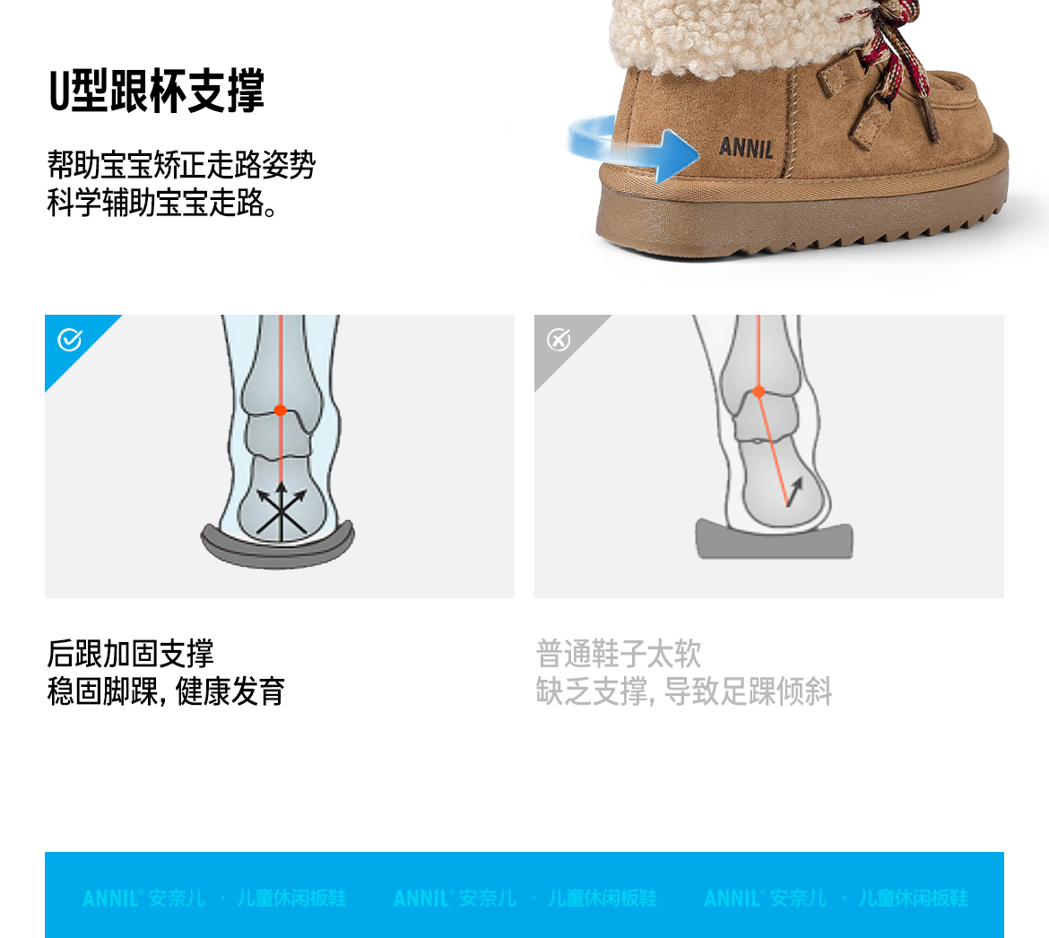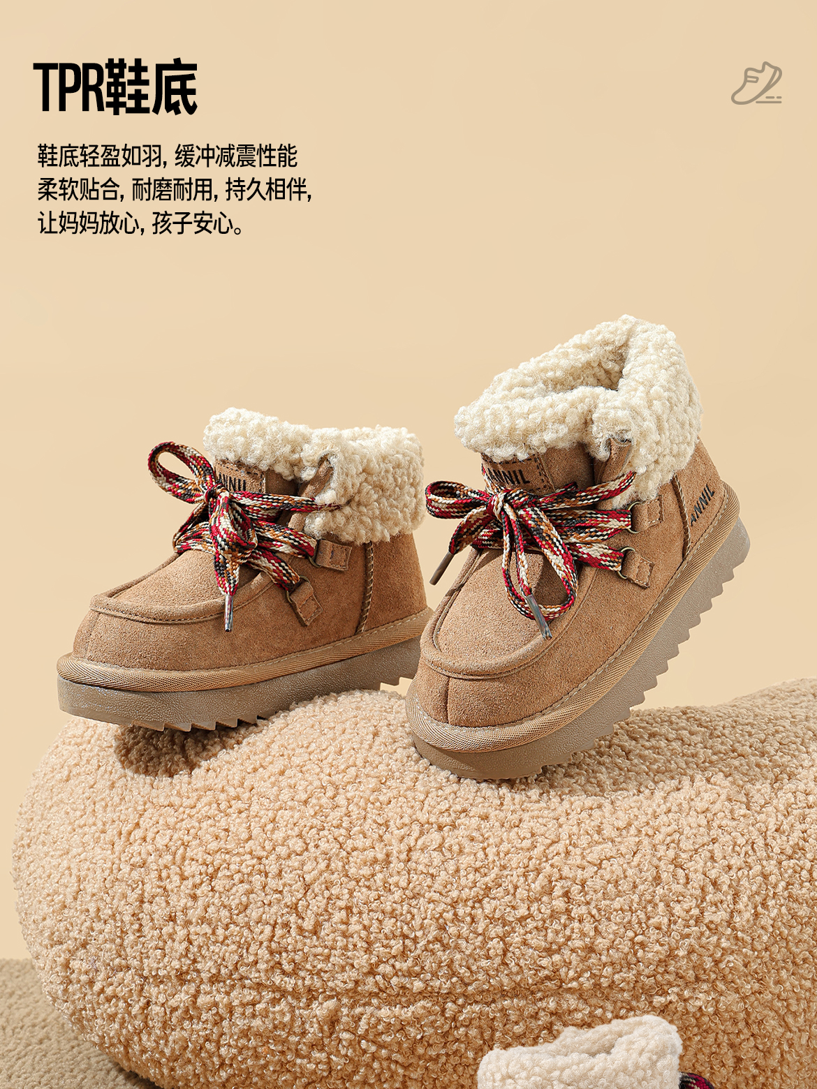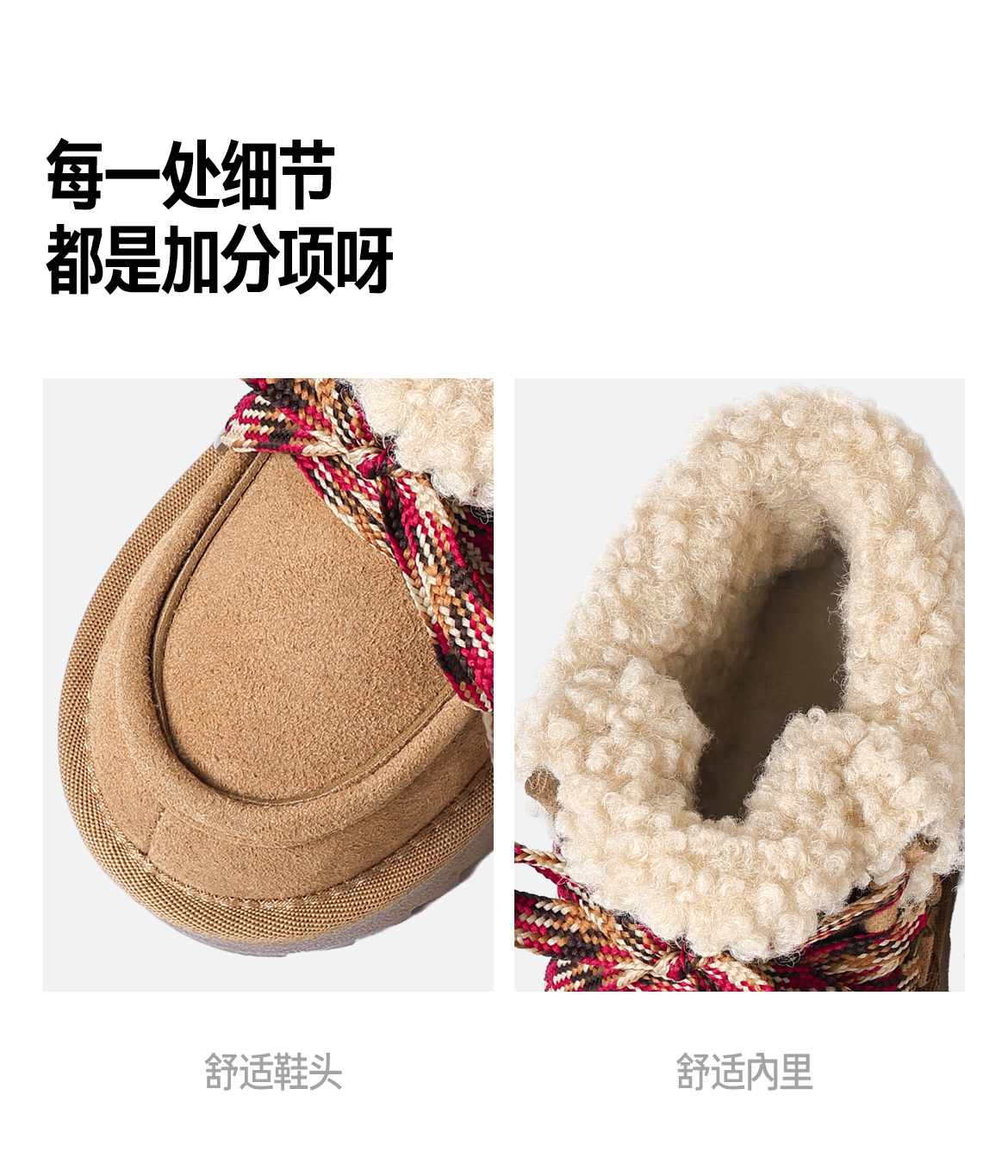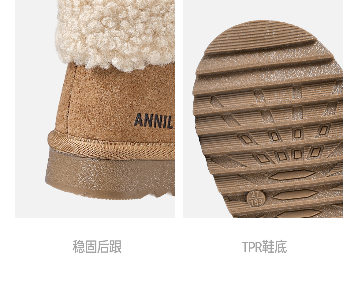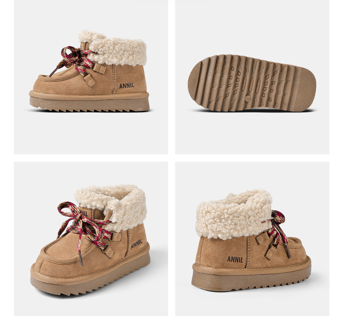ANNIL/安奈儿童鞋女童公主保暖休闲鞋冬季加绒加厚中大童鞋可爱毛茸茸防滑蝴蝶结棉鞋HG5411594
