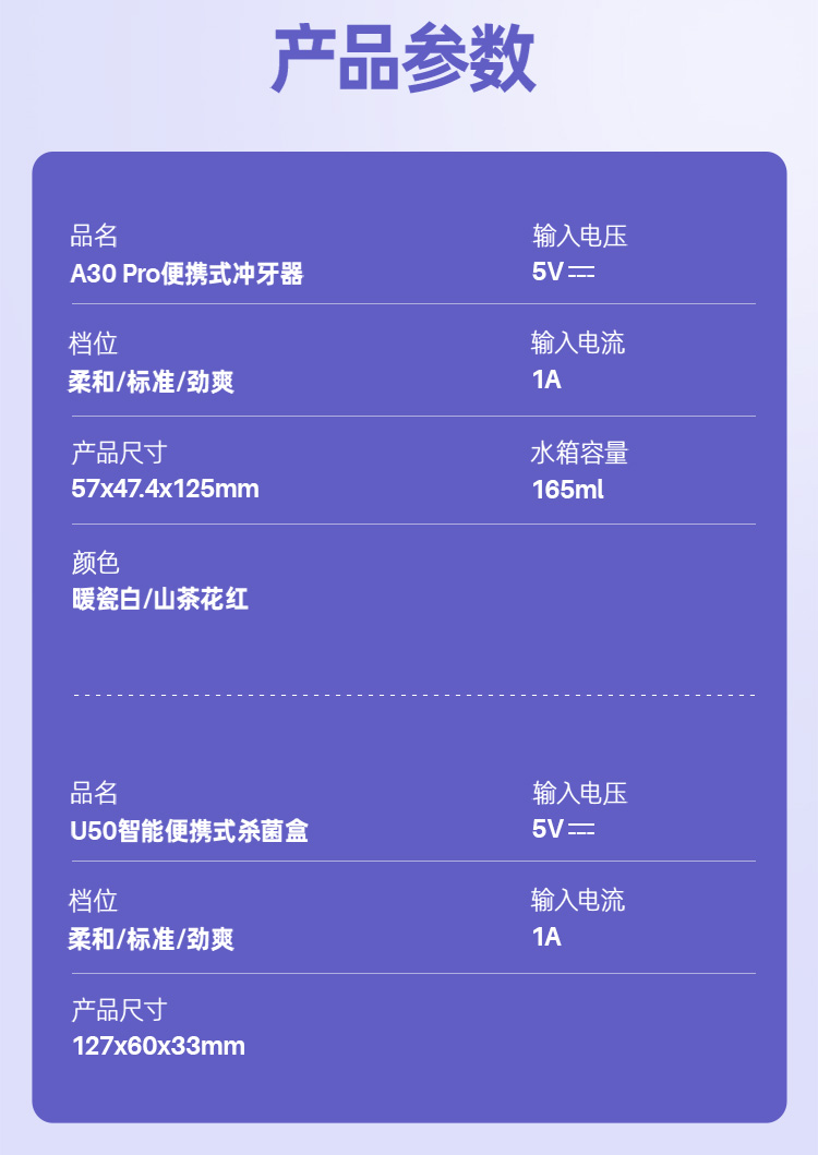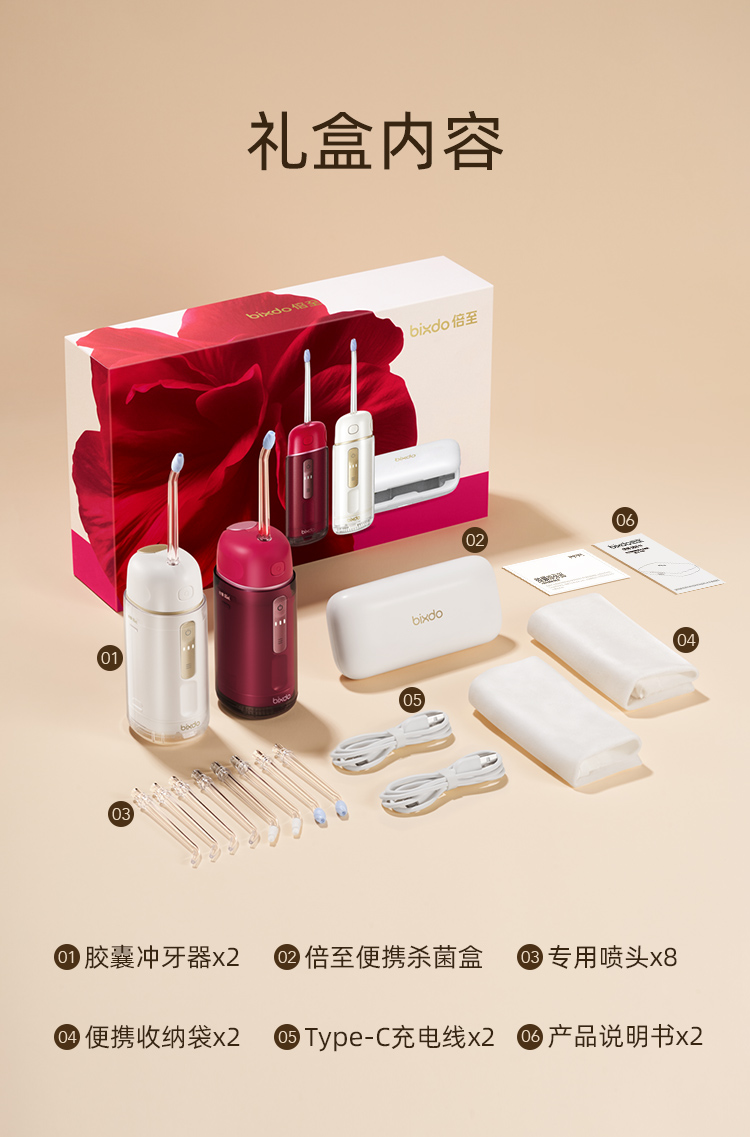 ①胶囊冲牙器×2 暖瓷白+山茶花红