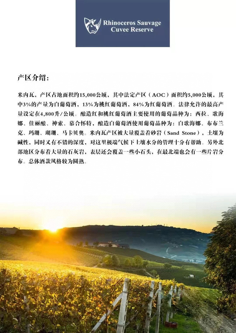 来自法国著名的米内瓦Minervois葡萄酒产区,也是朗格多克Languedoc醉大的产区之一