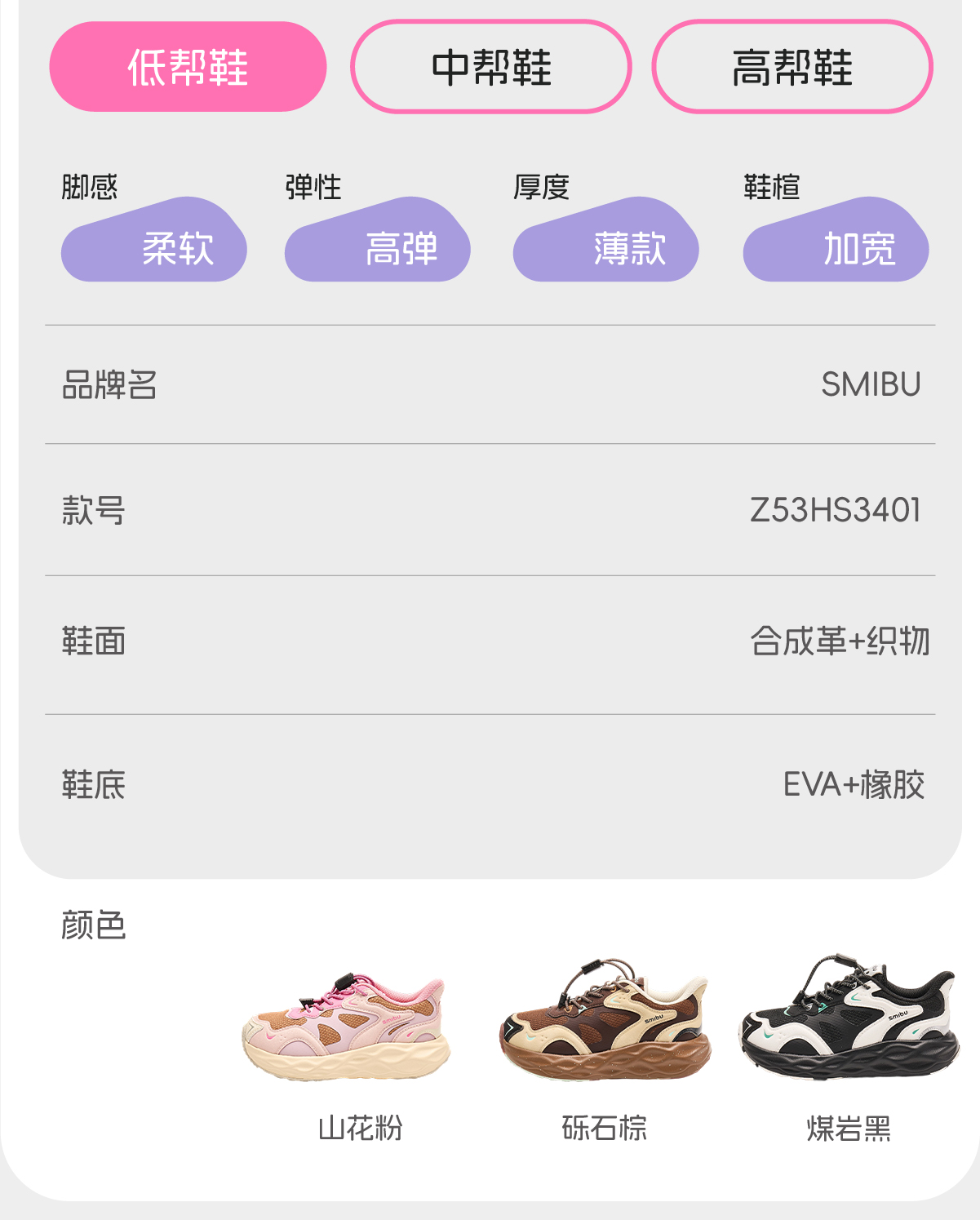 SMIBU男女中大童0压感系列秋季新款风语者户外登山鞋厚底缓震休闲运动鞋Z53HS3401【CC爸妈团购】