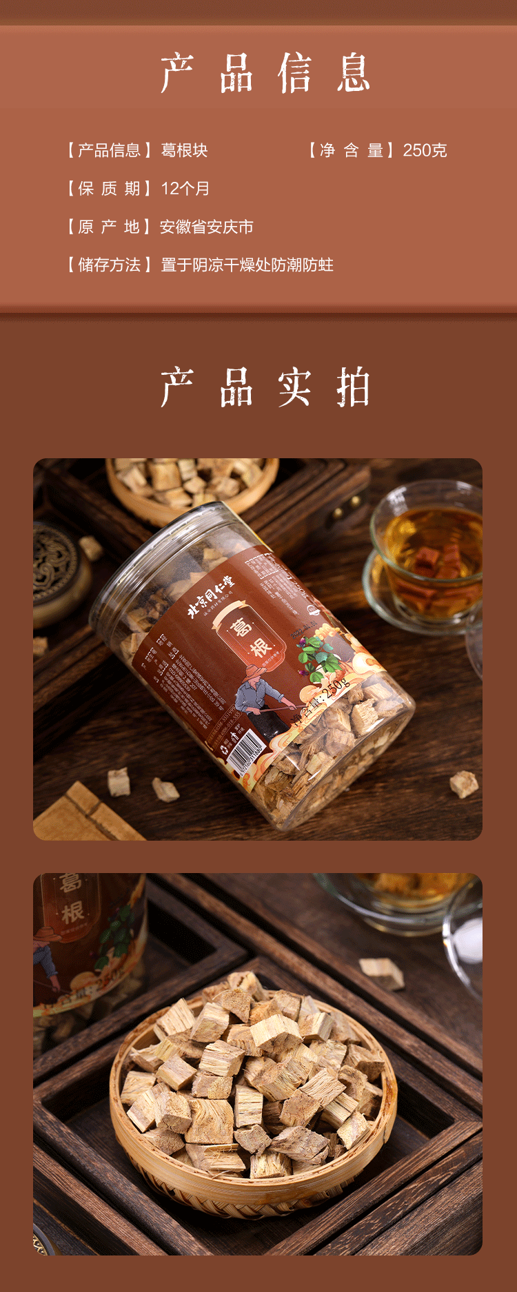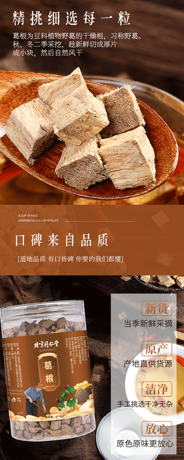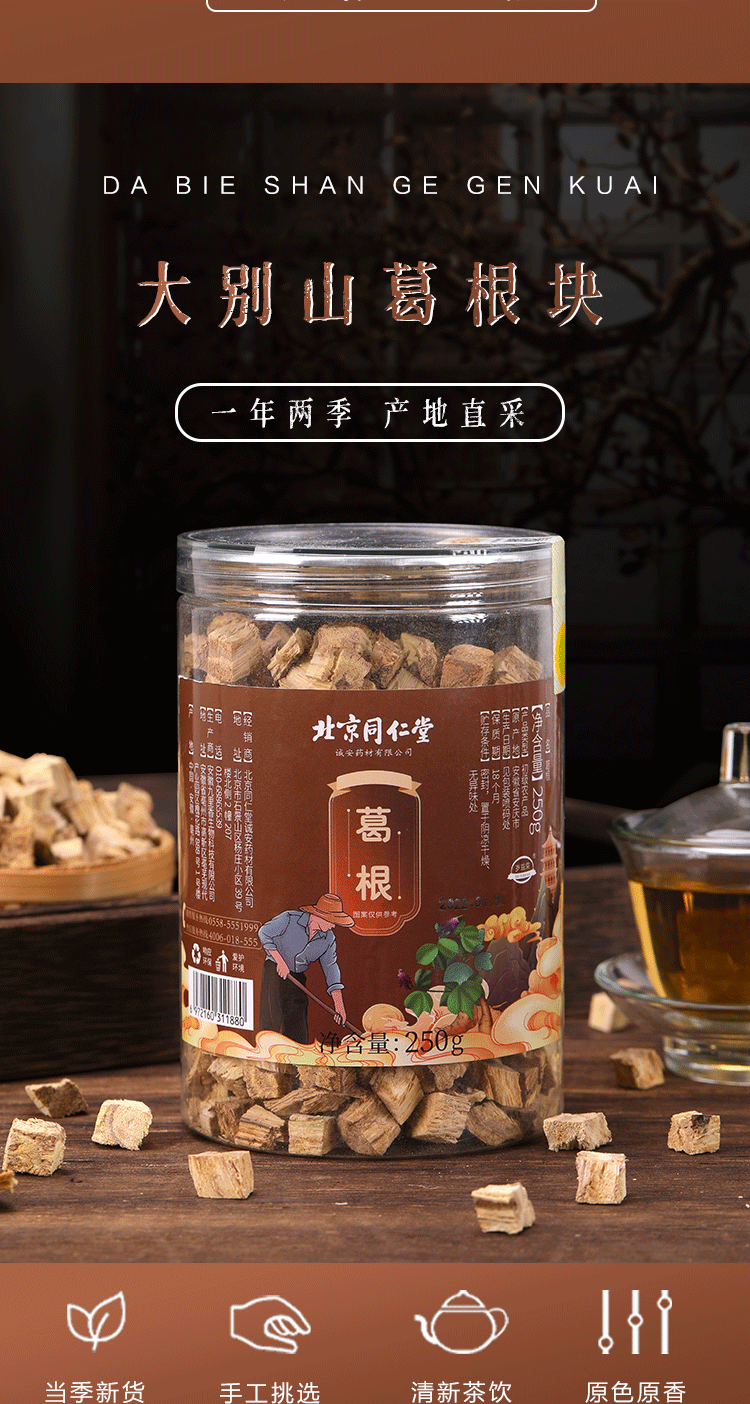 【第2盒半价】北京同仁堂葛根块南方人参大别山野生葛根块消热止渴健脾养胃不熏硫无添加