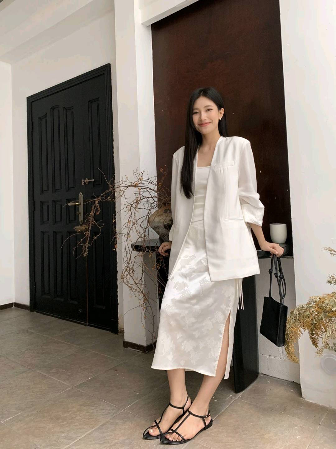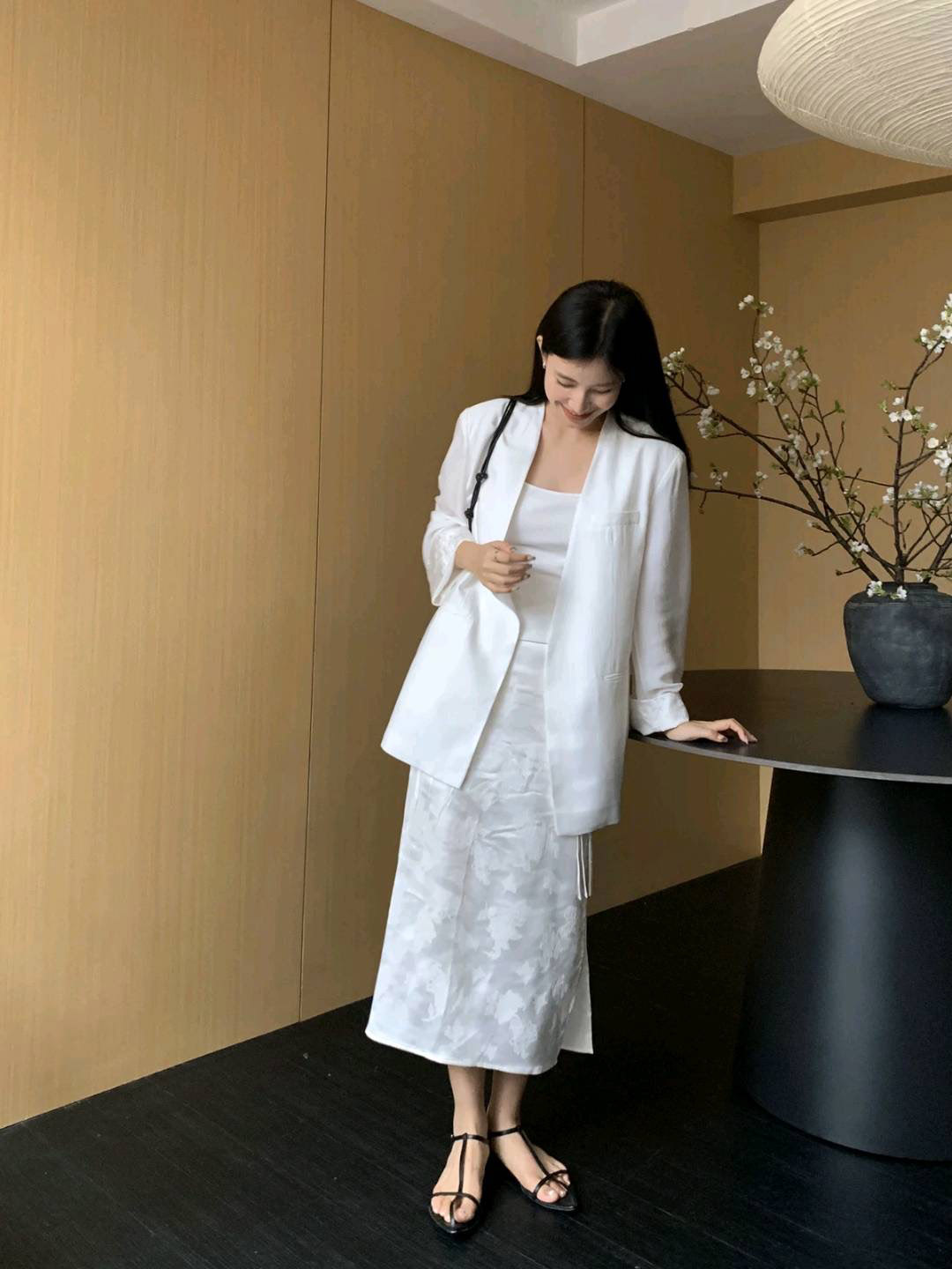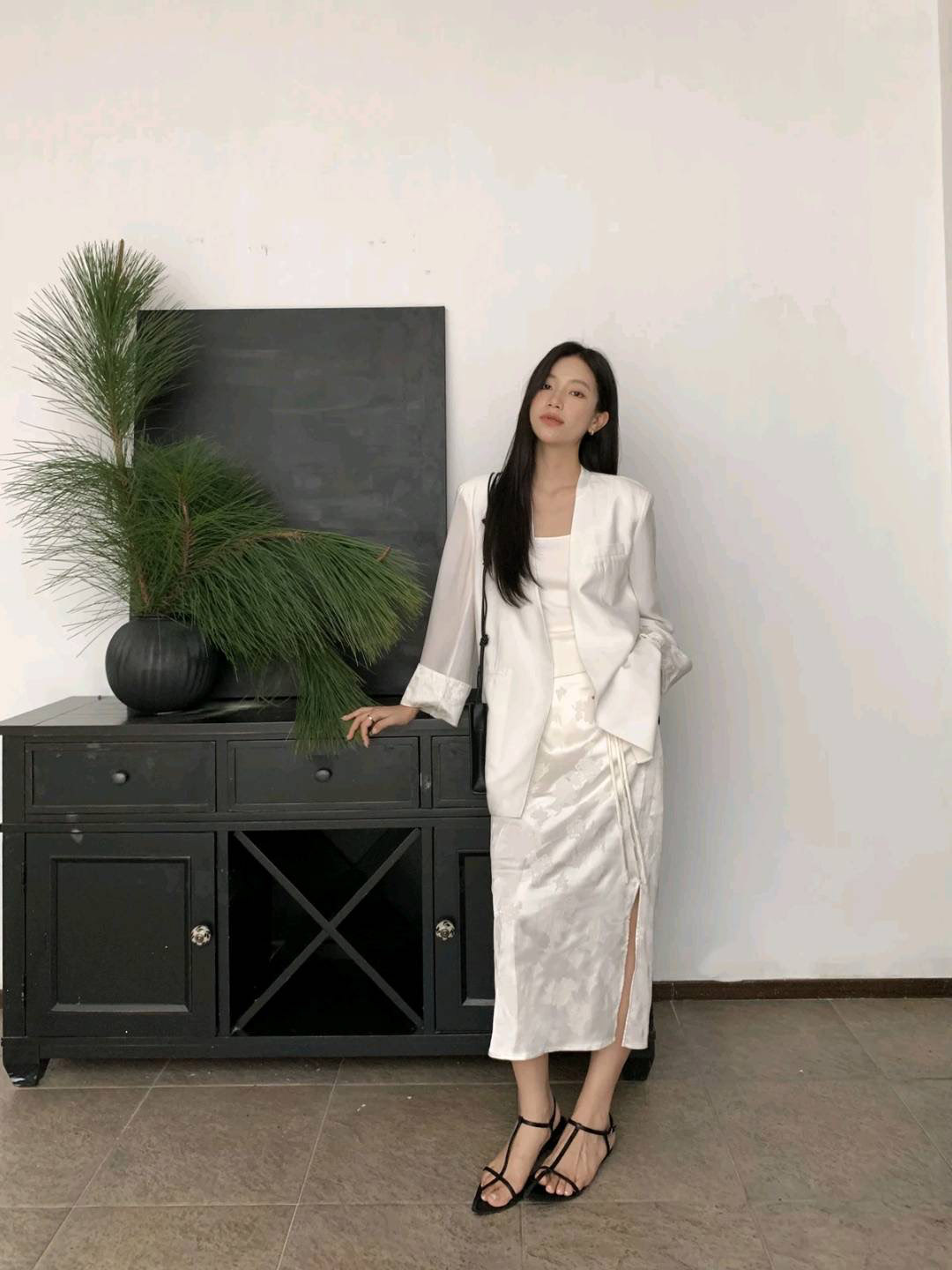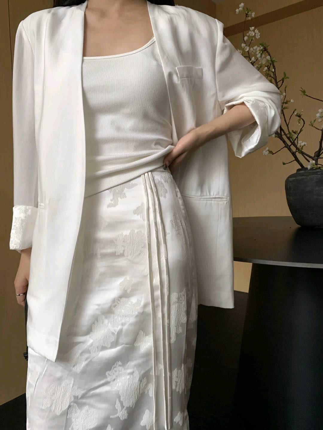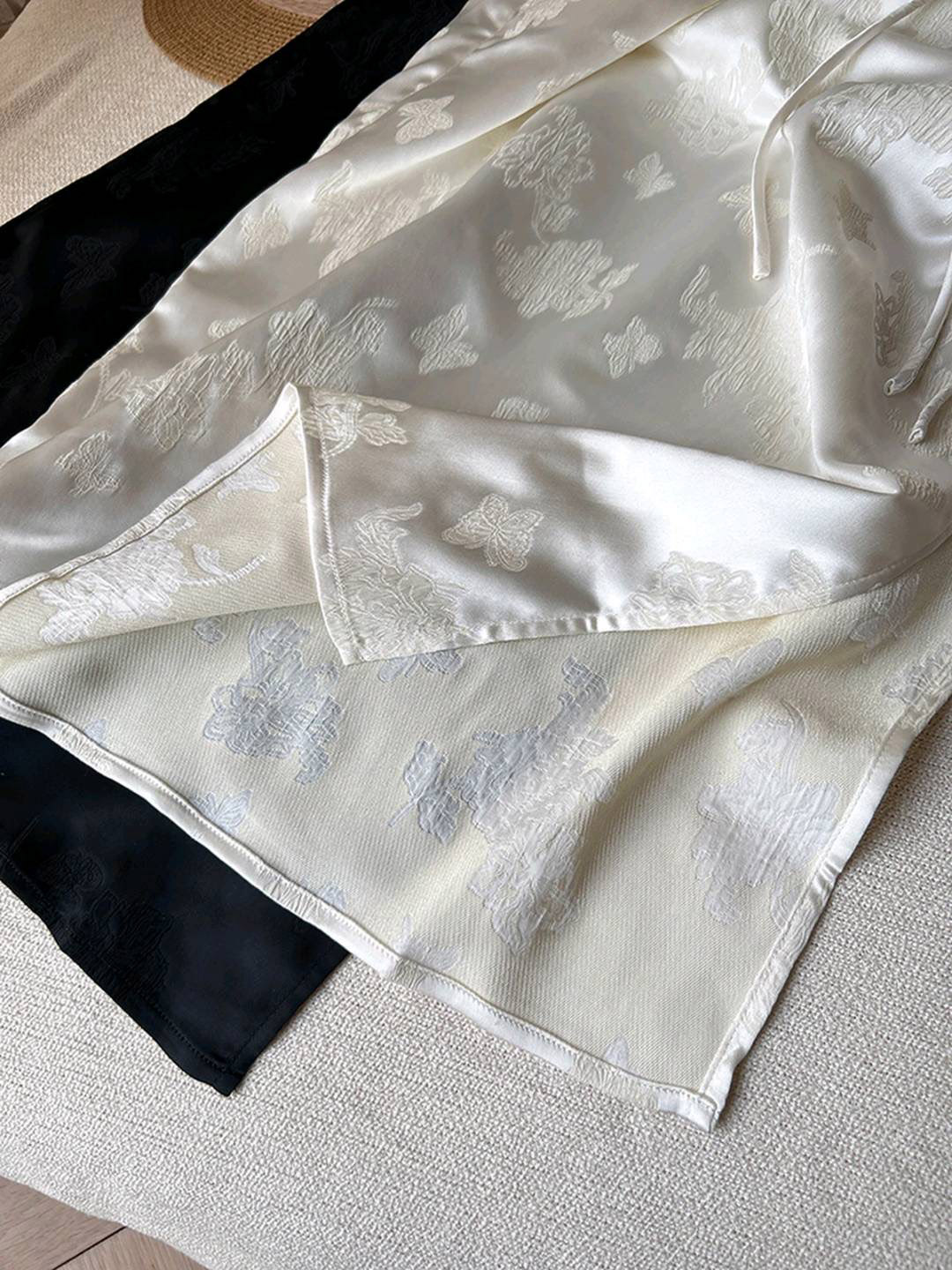 洛诗琳20213气质提花开叉半身裙2025新款新中式显瘦直筒裙0072