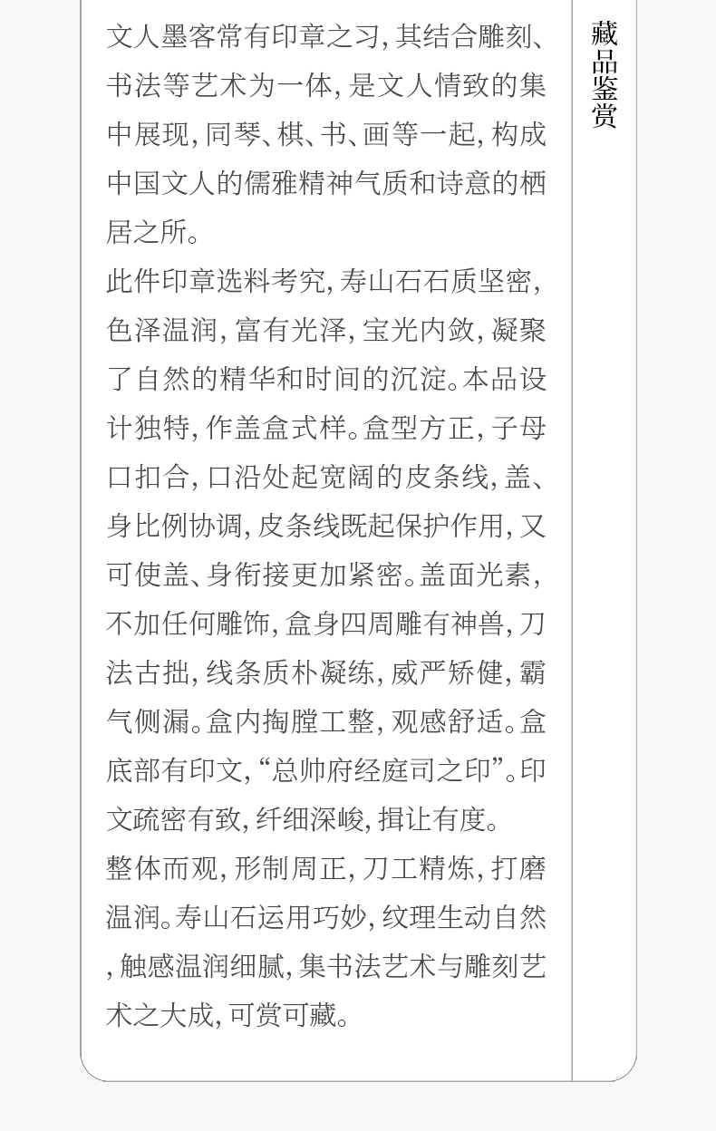 清 寿山石雕神兽“总帅府经庭司之印”