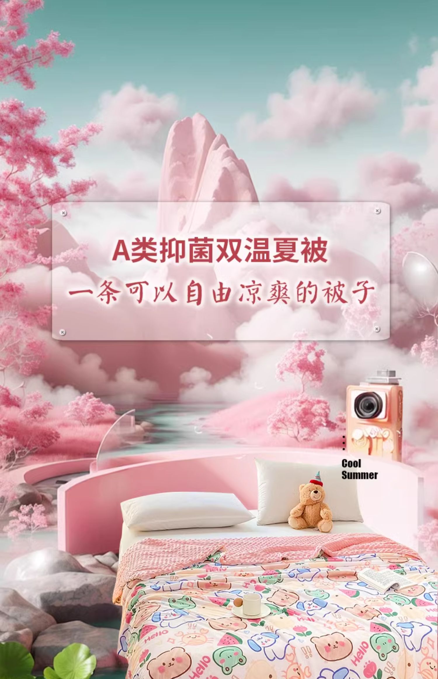 【维科家纺】印花冰感双温A类抑菌夏凉被纤维被芯夏被双人空调被子春秋被