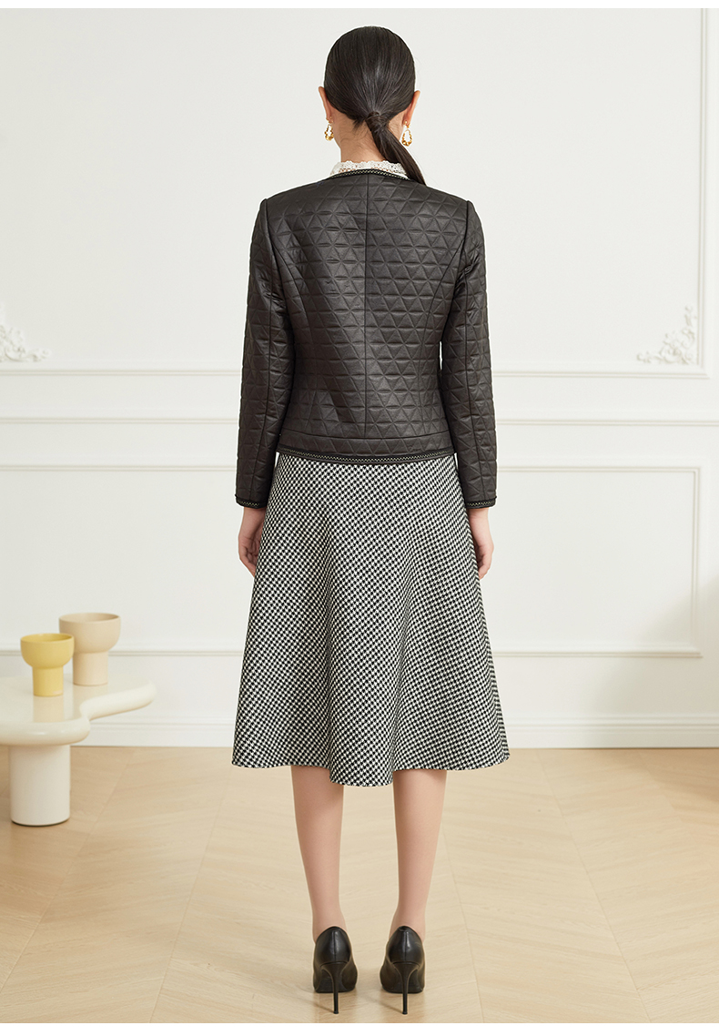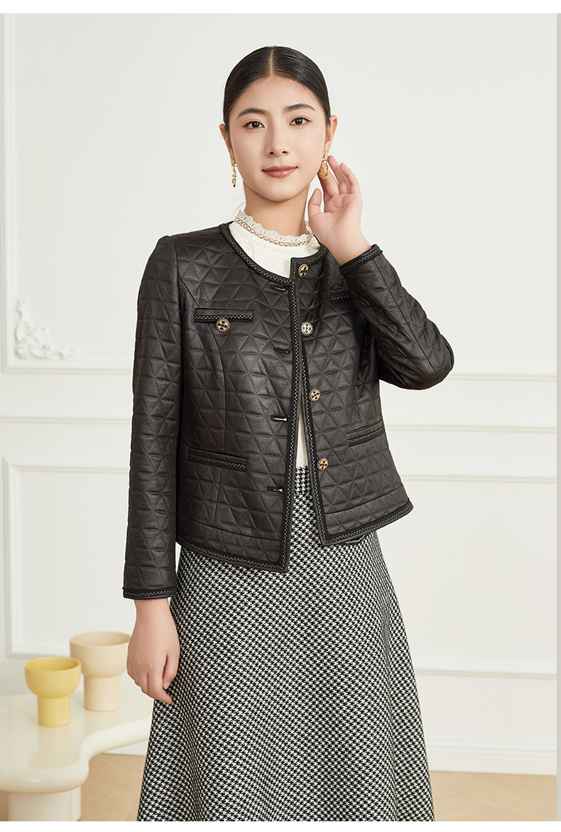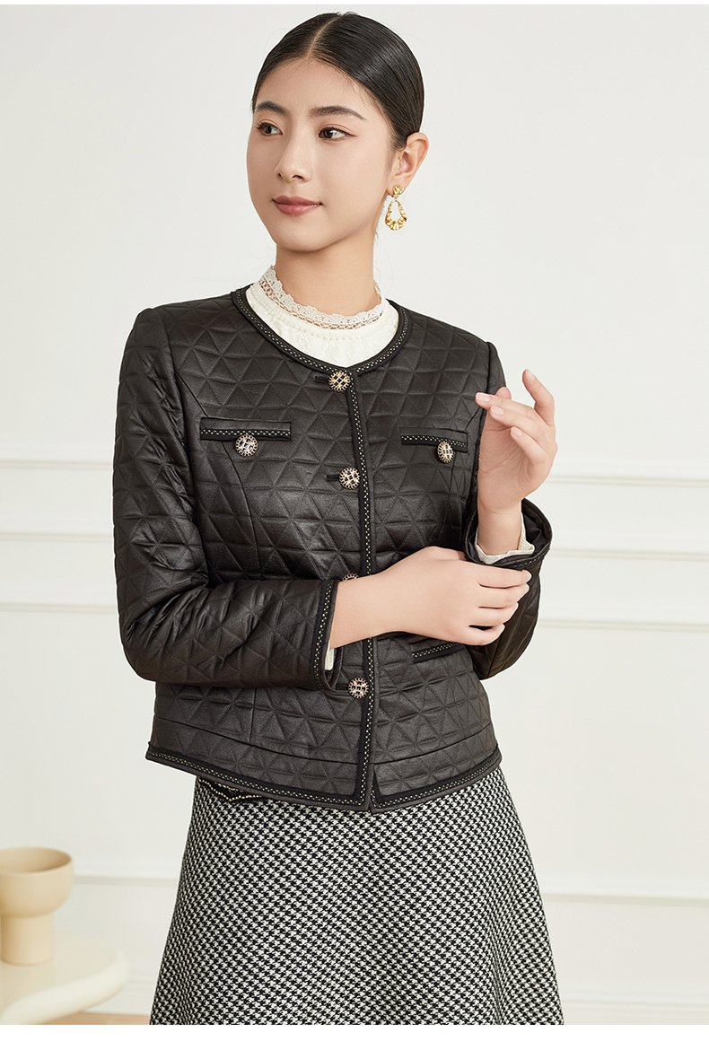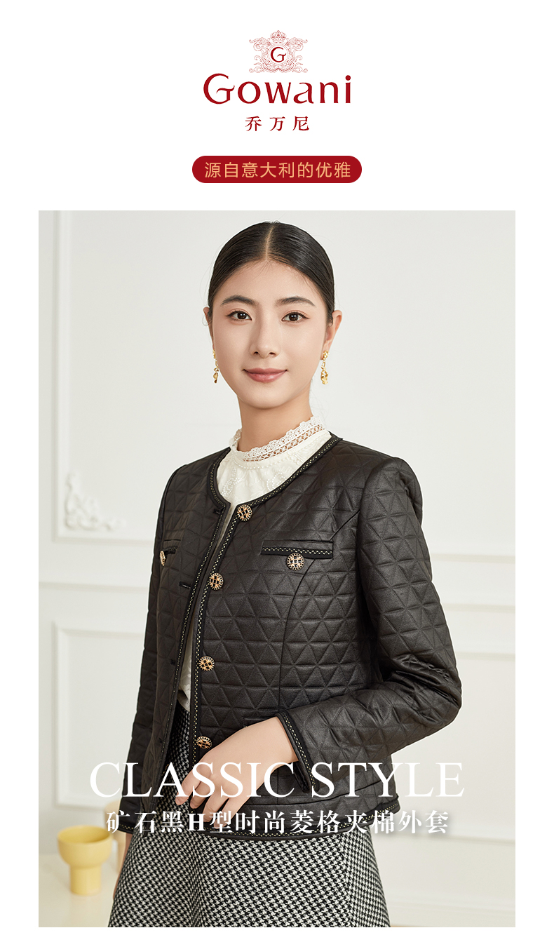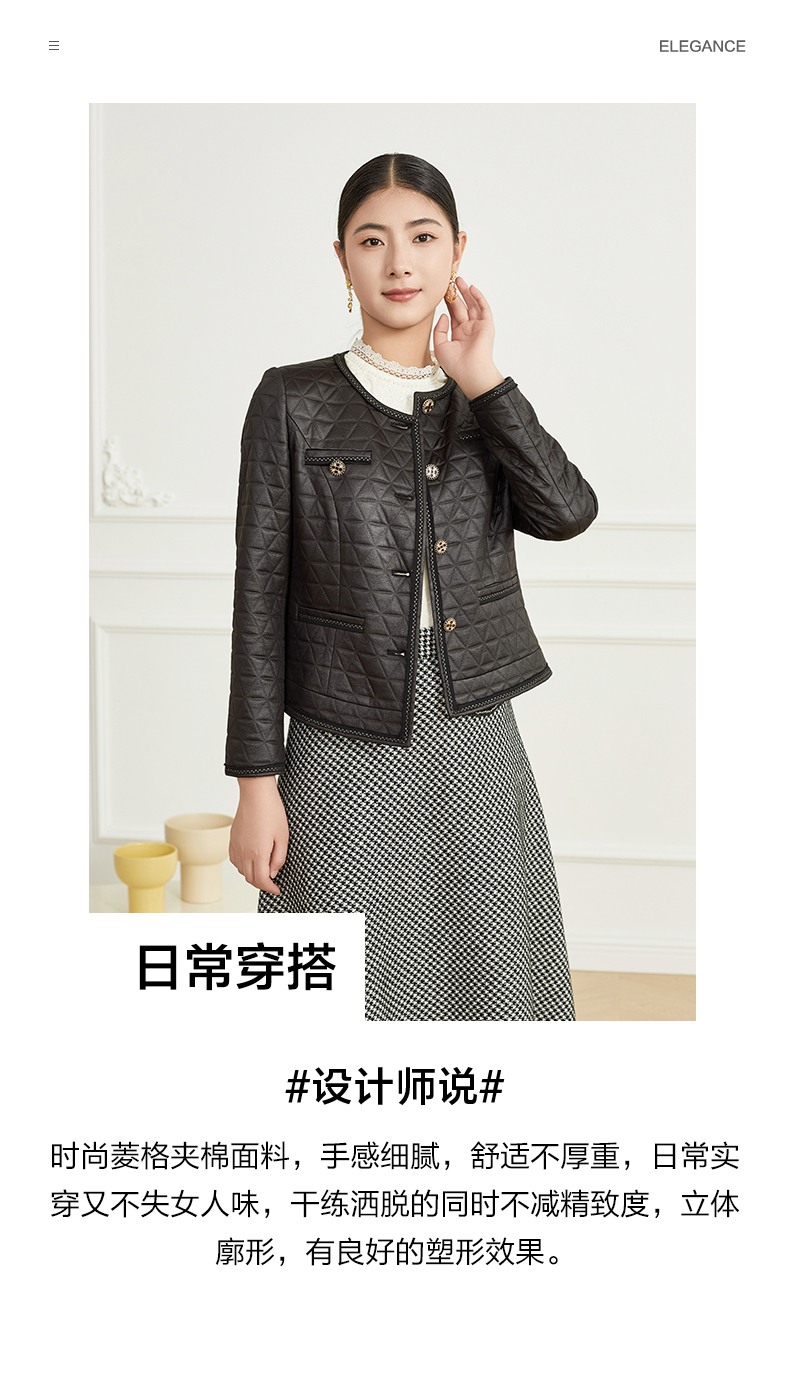 乔万尼干练菱格纹时尚小香风棉服外套EM1B131